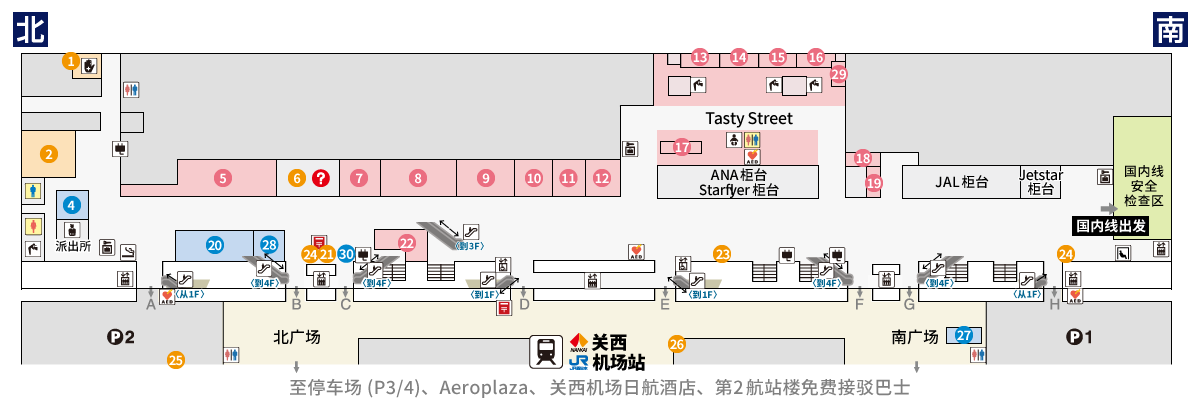 洗手间(除南北楼两侧、15号登机口、地下1F之外,残疾人均可使用)