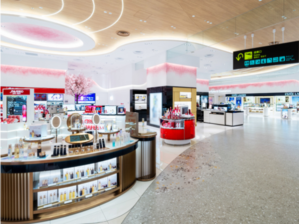 在约2500㎡的区域内,广泛经销香烟、日本特产等经典特产点心的综合免税店,包括首次在日本机场免税店亮相的品牌化妆品、香水,从世界知名品牌到当地名酒等多种酒品、日本国内外种类丰富的香烟以及作为日本礼品的经典特产点心。