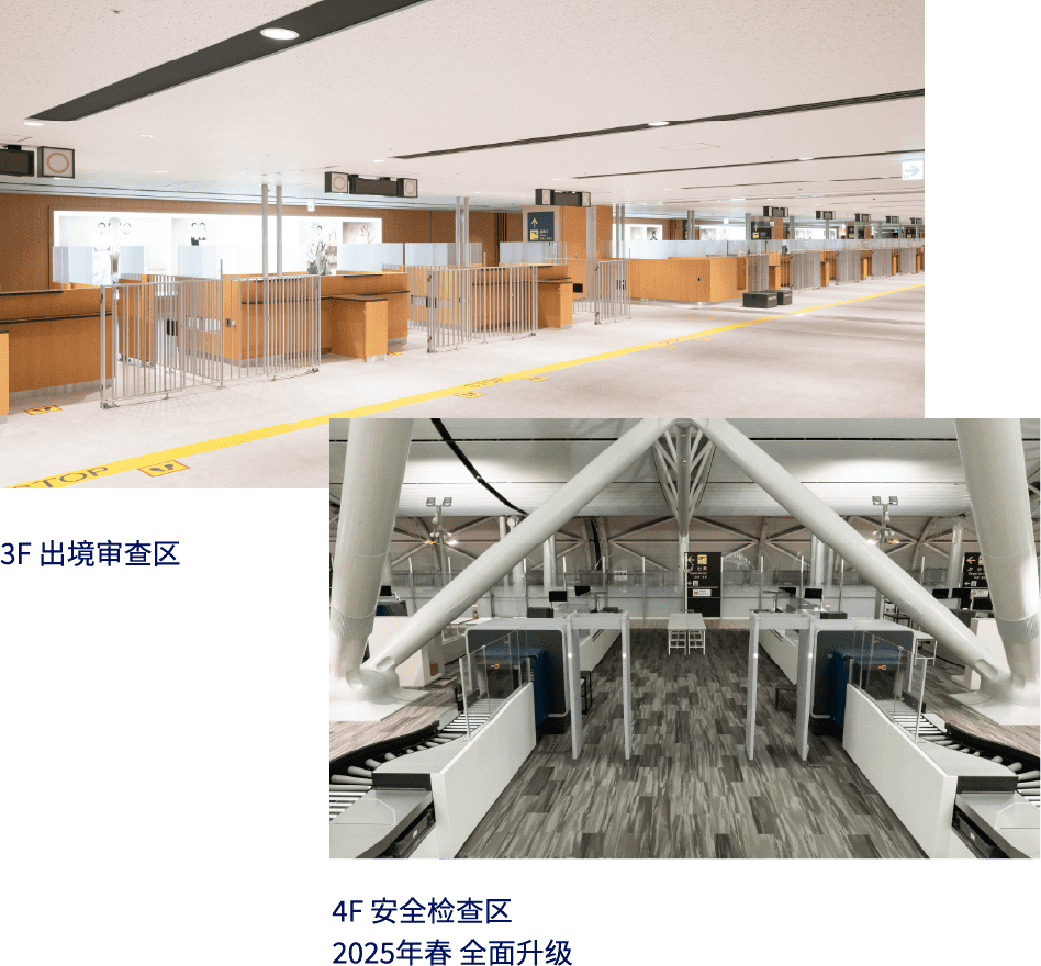 一体化集约型安检区,以及日本国内首个大型国际航线通用贵宾休息室等设施,将为各位旅客提供全新的旅行体验。