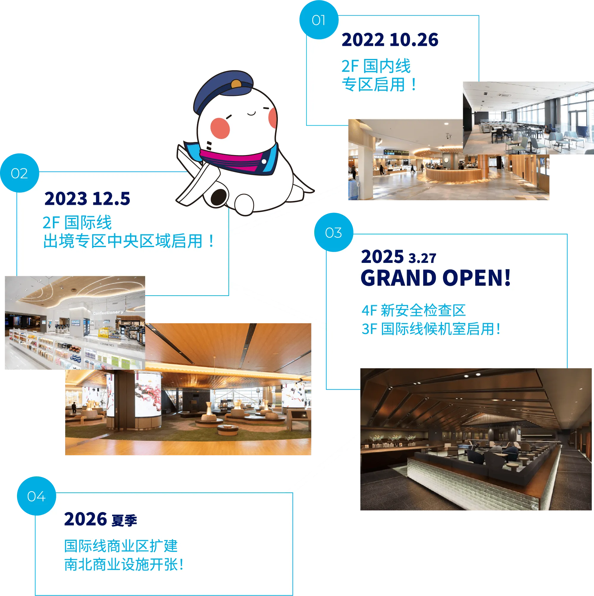 第一航站楼于2025年3月27日焕新启用。2022年10月,新国内航线区域开放;2023年12月,