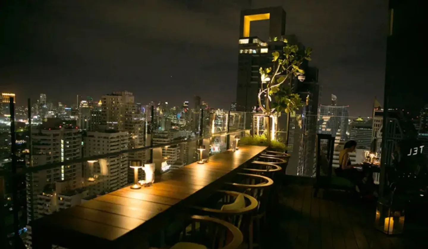 ハイアットリージェンシー・バンコクスクンビットホテルの最上階のルーフトップバーでは、美しいバンコクの夜景を眺めながらドリンクや西洋料理を楽しむことができます。