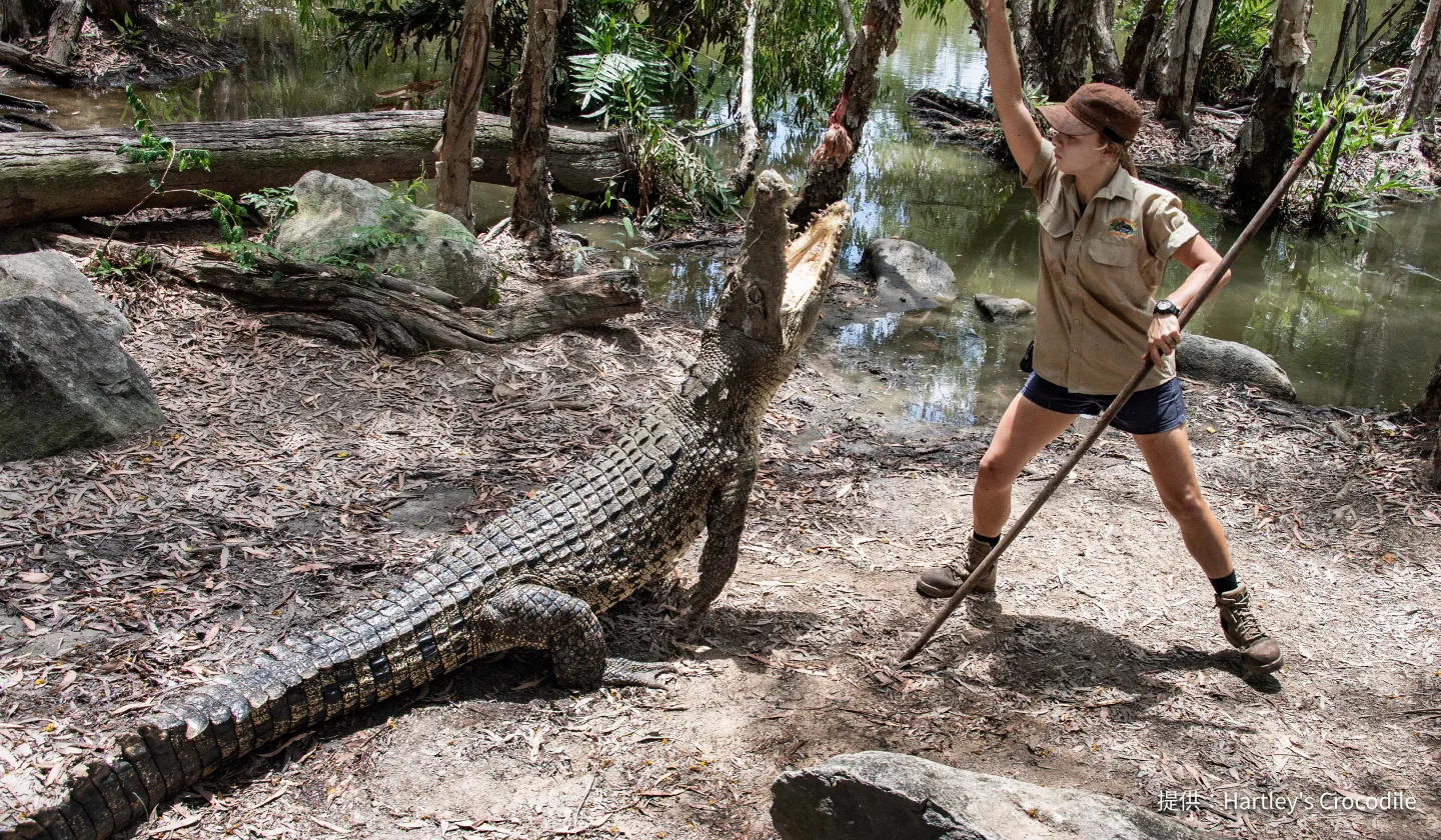 ハートリース・クロコダイル・アドベンチャーズは、ケアンズ中心部から海沿いを北へ約40kmほど進んだ場所にある、ケアンズ最大の動物園です。