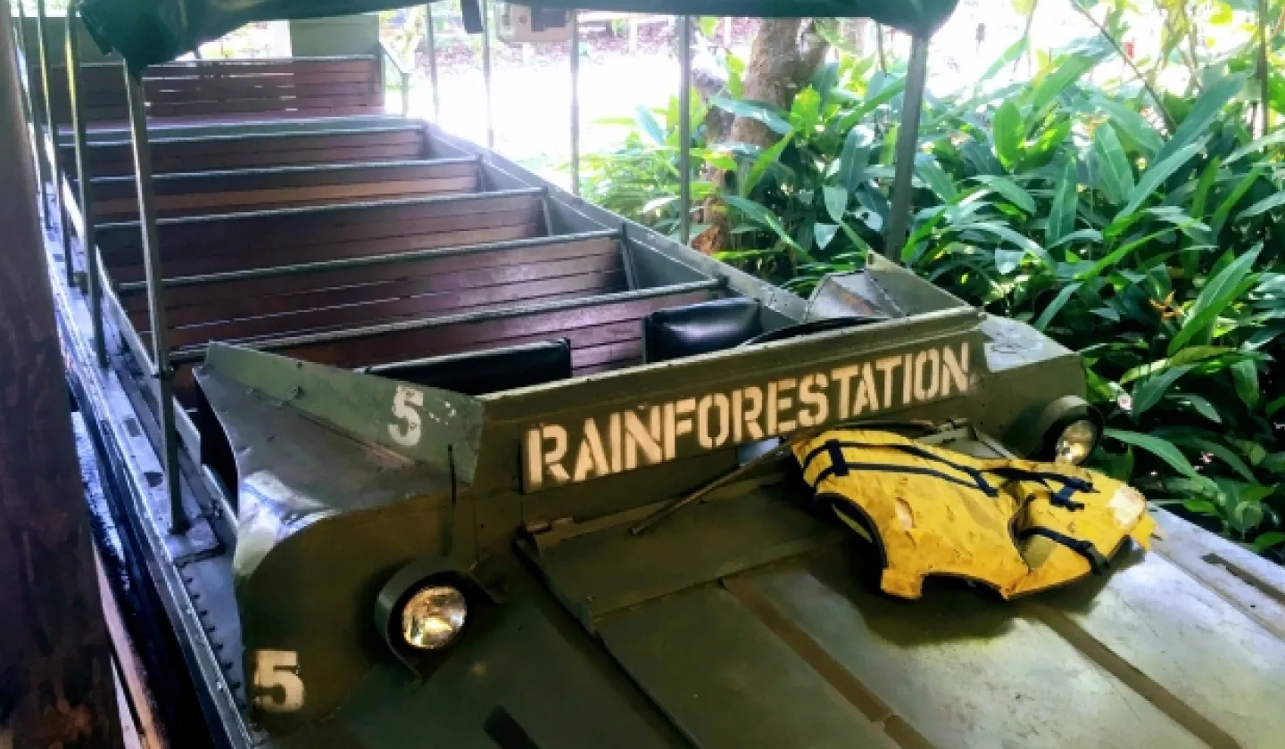 熱帯雨林の生い茂る園内の神秘的な情景は、まさに映画の世界観そのもの。
