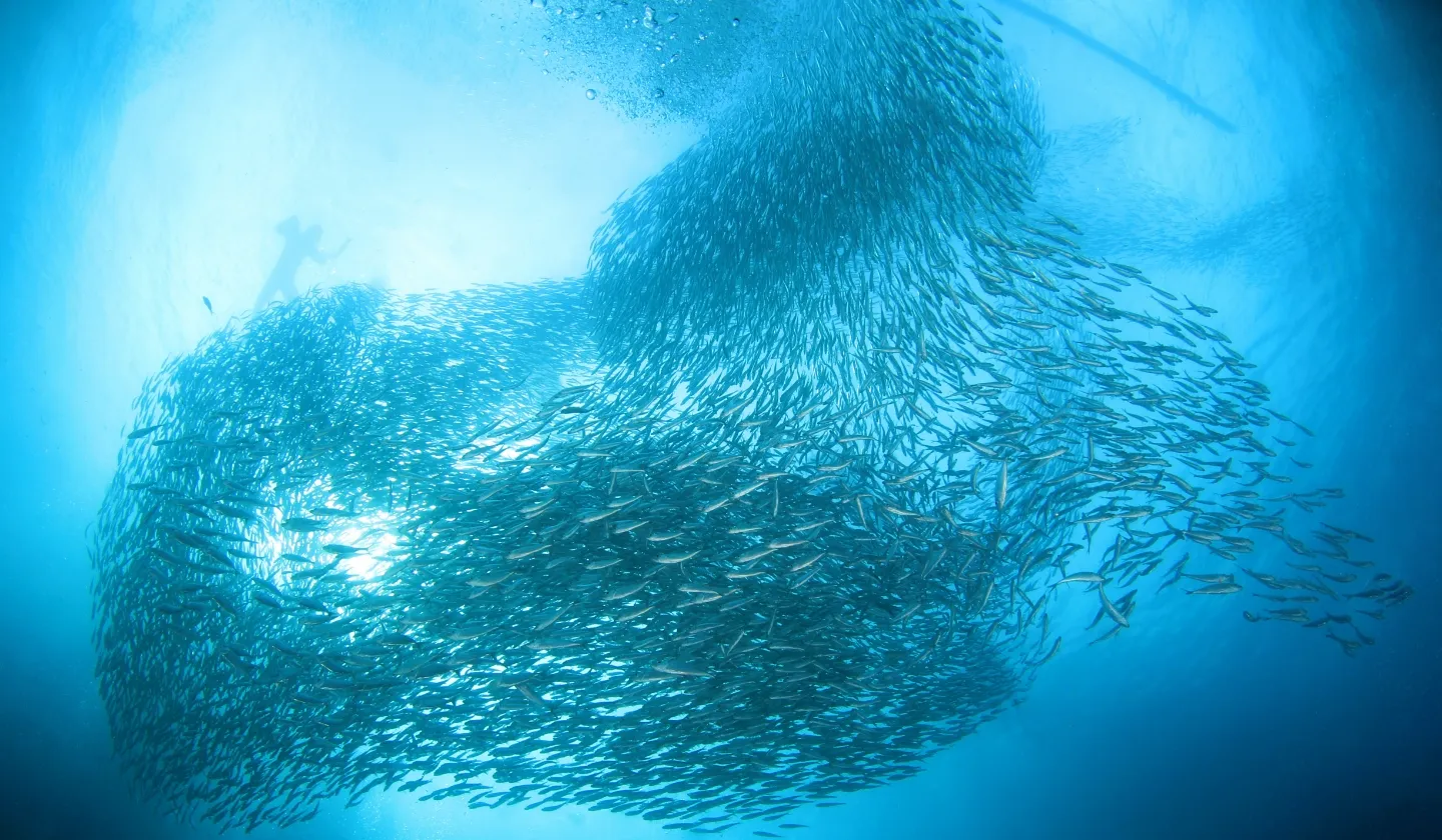 最大の魅力は、透明度の高いエメラルドグリーンの海でのシュノーケリングとダイビングです。ウミガメやカラフルな熱帯魚の観察ができるだけでなく、有名な「イワシトルネード」現象も見られる可能性があります。
