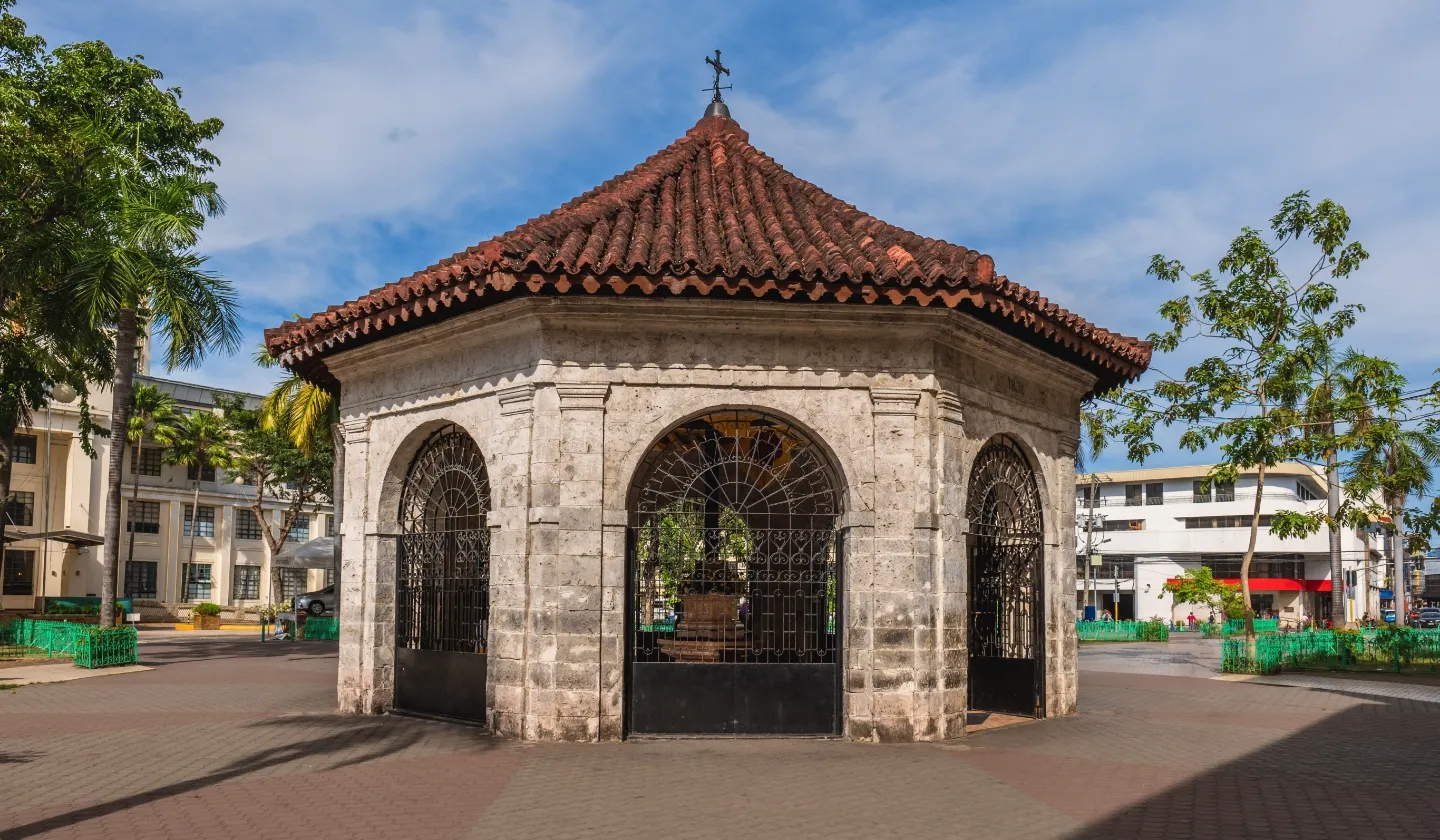 マゼラン・クロスは、セブ島を訪れる際に外せない歴史的な観光スポットのひとつです。1521年に有名な探検家フェルディナンド・マゼランがセブ島に到着し、最初のキリスト教徒となったフマボン王と王妃ファナ、そして400人の臣下に洗礼を授けた地に建てられたとされる象徴的な場所です。