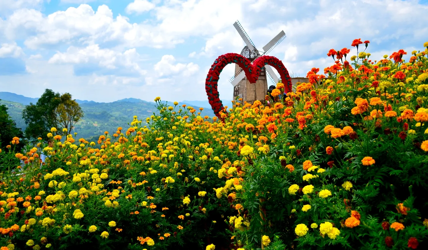 SNS映えスポットとしても有名で、オランダ風の風車や芸術的なフォトスポットが点在しています。高原からの壮大な景色も魅力のひとつで、特に朝日や夕日の風景は圧巻です。季節ごとに異なる花々を楽しみながらのガーデン散策や、朝日・夕日鑑賞も人気です。