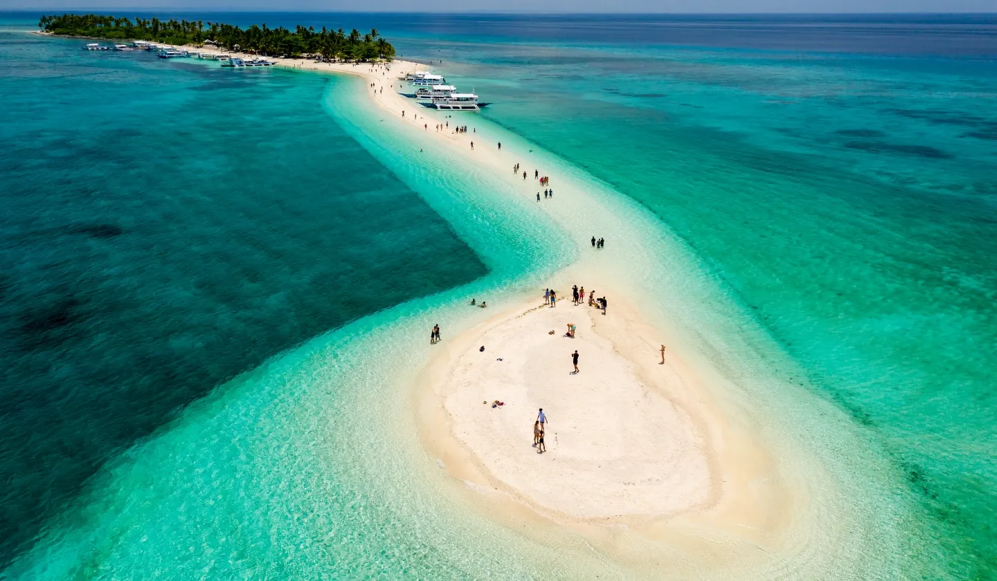 カランガマン島は、セブ島から北東約100kmに位置する、美しいホワイトサンドバーで知られる隠れた楽園です。全長約753mの小さな無人島ながら、世界中の旅行者を惹きつけています。