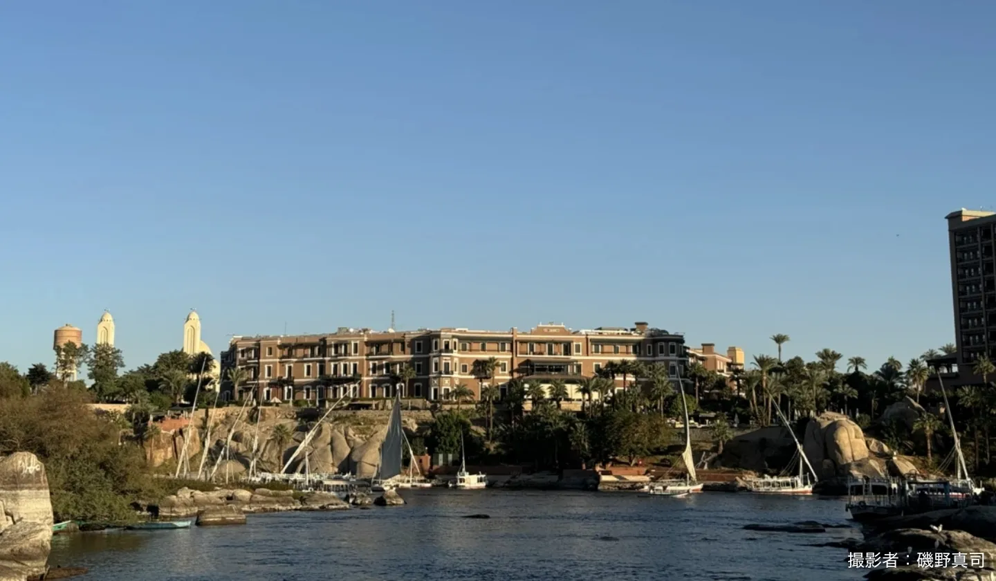 もうひとつの魅力は、旧館のレストランのテラス席からの眺めです。このホテルは岩山の上に位置しており、眼下にはナイル川が流れ、その景色を眺めながらヤシの椅子に腰かけると、アスワンの素晴らしいパノラマを満喫することができます。