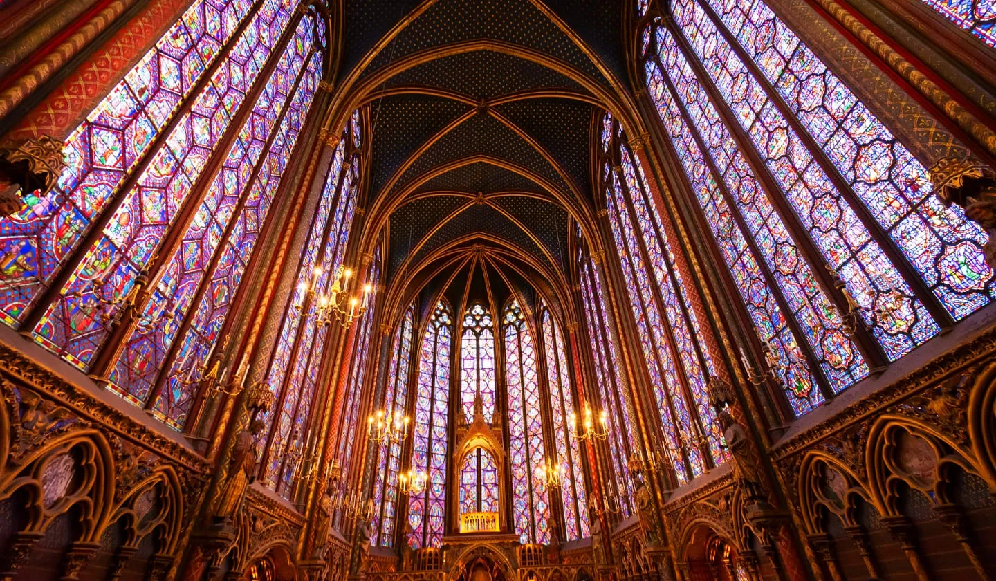パリ中心部のシテ島にあるゴシック様式の教会。礼拝堂の壁一面を覆いつくすようなステンドグラスはパリ最古のものと言われ、創世記からキリスト復活まで、1,113もの情景が描かれています。