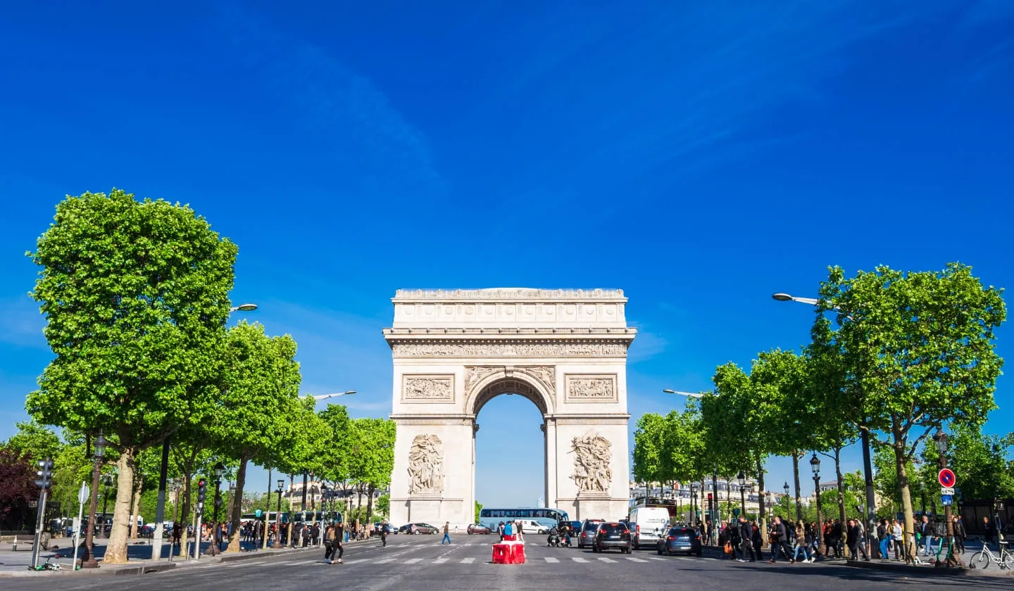シャンゼリゼ通りから見る凱旋門は、最もパリらしい景観のひとつと言えるでしょう。約2kmの大通りには有名ブランドのブティックやカフェが並び、マロニエやプラタナスの並木も印象的です。お腹が空いたら日本でも有名な「ラデュレ(Ladurée)」のティールームに立ち寄り、パリで最も有名なマカロンを味わってみてください。