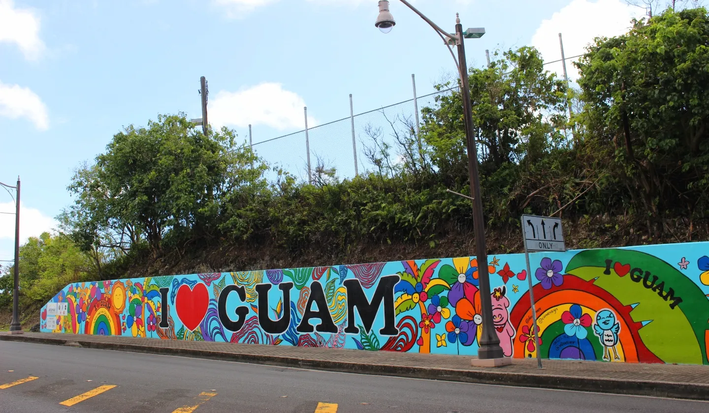 記念写真スポットとして、もう一か所おすすめしたいのが「Kmart(Kマート)」に向かう途中の坂にある、“I LOVE GUAM”と描かれたアートスポット。ここはコロナ禍の2年半の間にカラフルで楽しい雰囲気に大幅リニューアル!Kmartでのお買い物された際は、ぜひ帰りに立ち寄ってみてくださいね。
