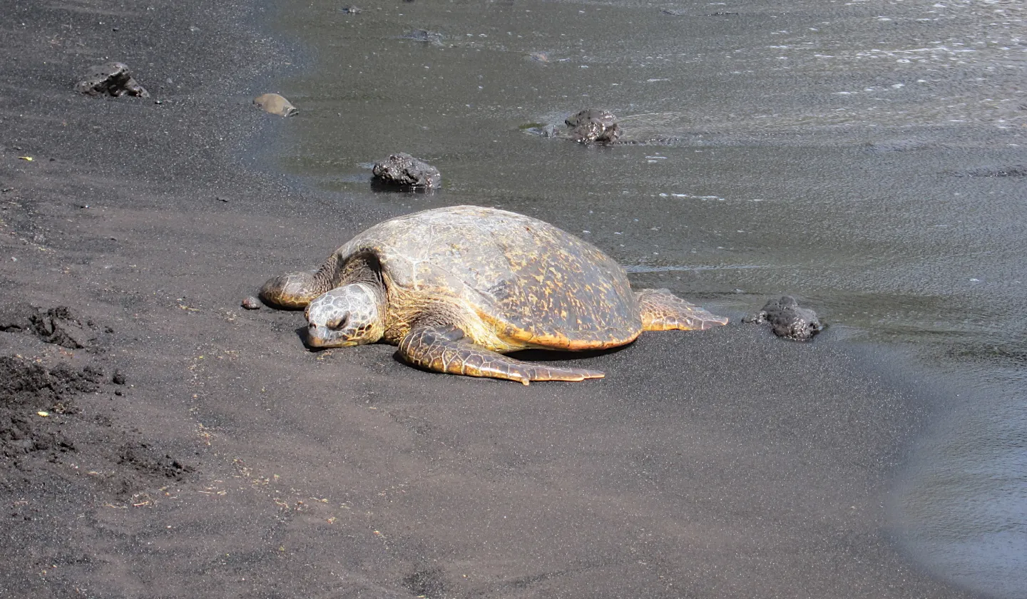 黒砂海岸は、ホヌ(ウミガメ)に出会えることでも有名なビーチです。「運が良ければ」ですが、砂浜で休む姿や波打ち際で泳ぐ姿が見られ、ハワイの穏やかな自然を感じられます。野生生物が暮らす大切な場所のため、触れたり近づきすぎず、静かに見守りましょう。