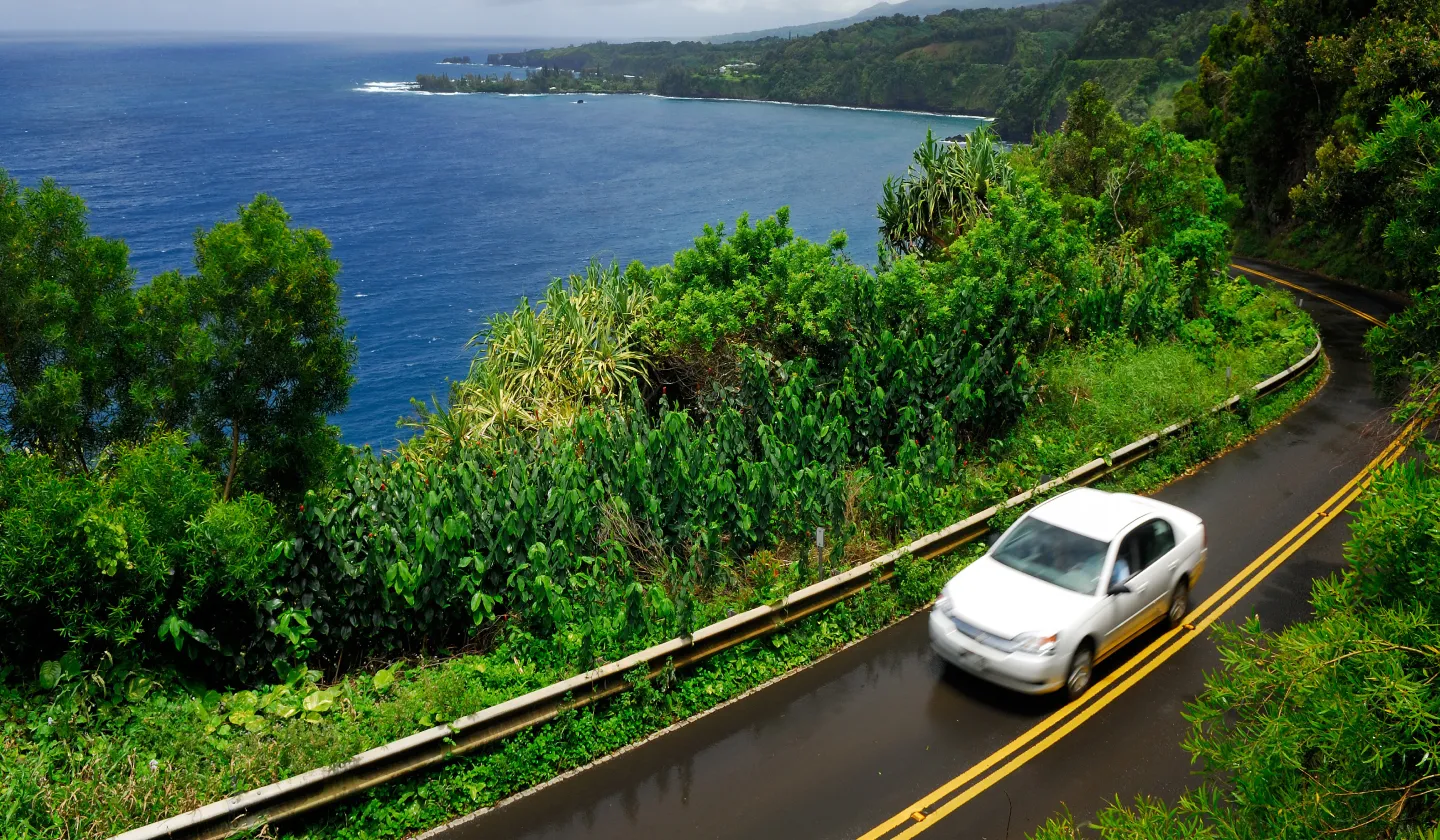 620のカーブと59の橋があり、滝や小さなビーチ、展望ポイントなど、思わず車を停めたくなる美しい景色が次々と現れます。手つかずの自然が残る町ハナまでは、約2〜4時間のドライブです。