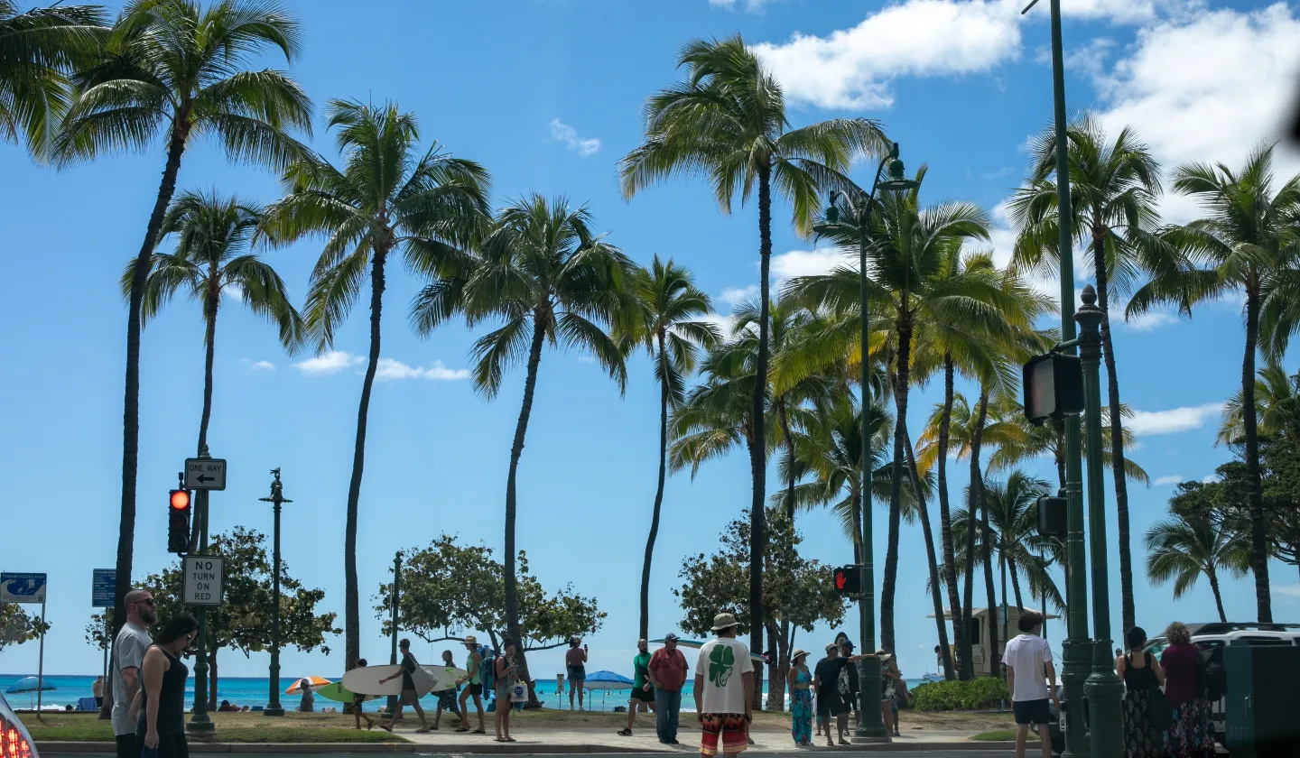 ホノルルはアメリカ合衆国ハワイ州の州都で、オアフ島の南部に位置します。ハワイ州の政治経済の中心であるとともに、世界中から観光客が集まるリゾート都市です。平均気温は25〜28度と1年を通して温暖で、夏でも湿度が低く過ごしやすい気候が特徴。日本との時差は19時間です。