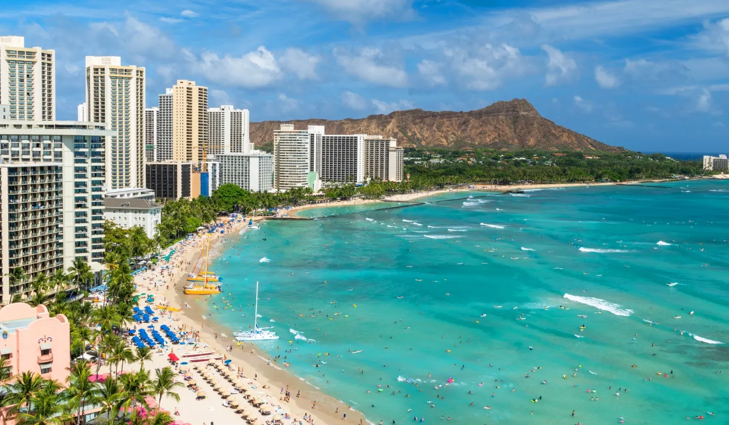 ハワイのビーチといえば、ワイキキビーチではないでしょうか。8つの小さなビーチからなるワイキキビーチは、西はアラモアナセンター近くから東はダイヤモンドヘッドのふもとまで、その距離は約3キロメートルにもおよびます。