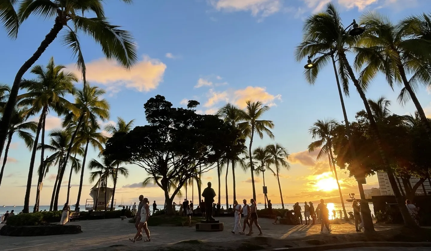 それぞれのビーチには違った特徴や魅力があり、その中でも朝から夜まで多くの観光客で賑わっているのがプリンス・クヒオ・ビーチ。防波堤に囲まれていて波も穏やかなため、小さなお子さま連れの家族におすすめです。ここでは多くの観光客が伝説のサーファー"デューク・カハナモク"の像の前で記念写真を撮っています。