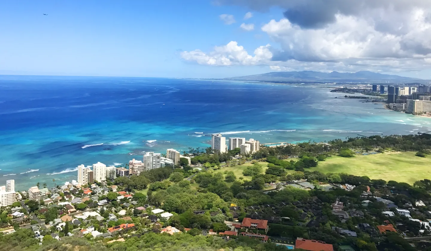 ハイキングコース全体の所要時間は、1時間から1時間半程度。常に混雑している人気スポットですが、子どもから大人まで安全に楽しめるアクティビティです。頂上から望む真っ青な海と空とワイキキのビル群は、ハワイに来るたびにまた見たくなるほどの絶景ですよ。