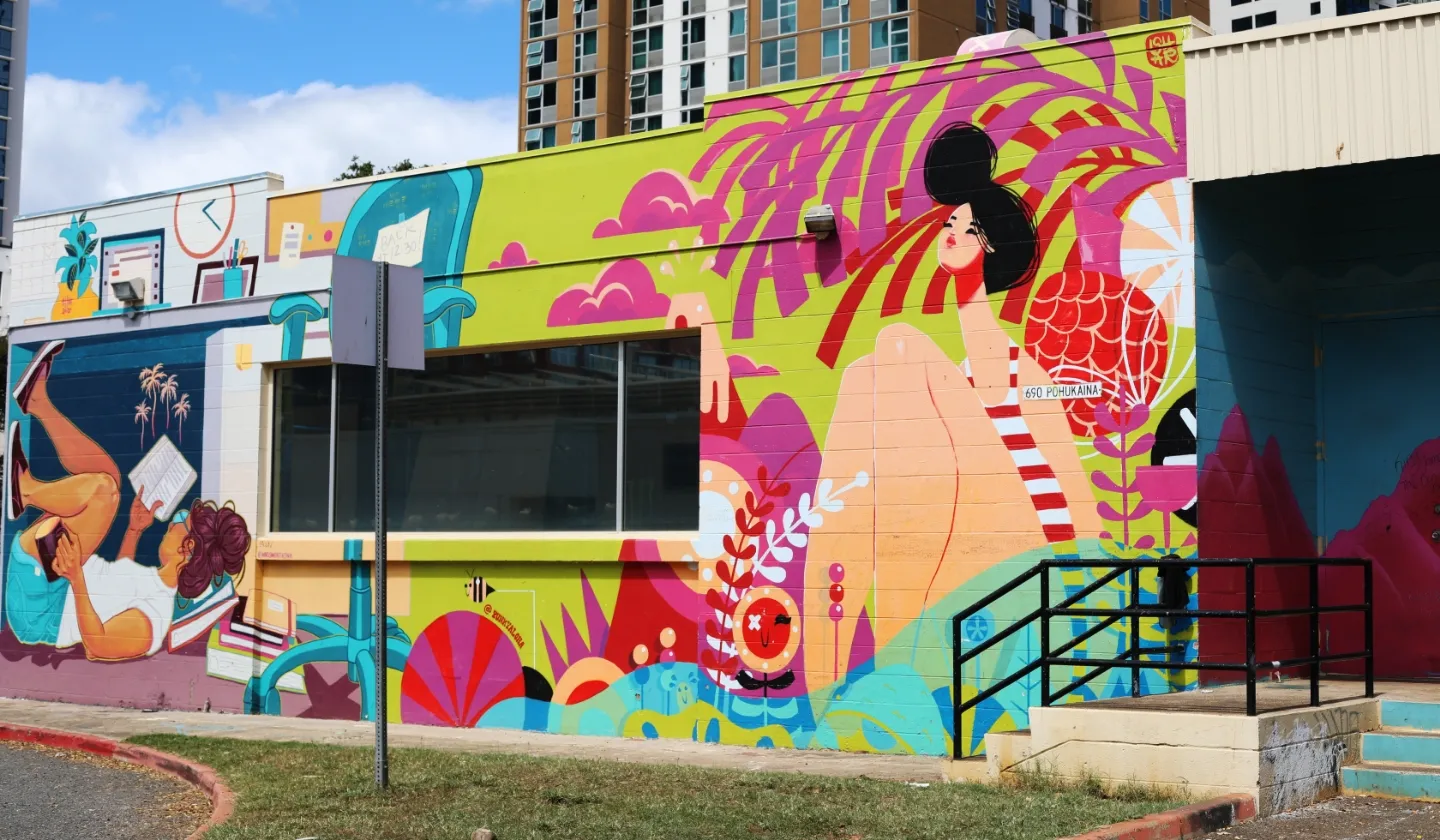 ワイキキから車で約10分、今現地の若者に最も人気のおしゃれな街がカカアコタウンです。ウォールアート(壁一面に描かれたポップなペイント)で一躍有名になったこのエリア。「SALT」という商業施設ができてからさらに人々が集まるようになりました。街に並ぶお店も大型ショッピングセンターとは一味違うおしゃれなお店が多く、海外の雑誌に出てくるような街並みを楽しむことができます。