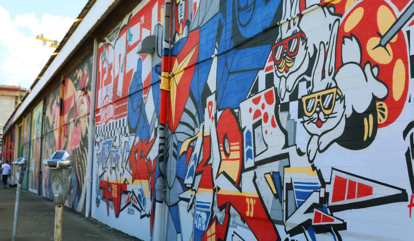 カカアコタウンではまずウォールアートの前でSNS映えする写真を撮るのがおすすめ!いたるところにウォールアートがあるので探しながら歩いてみてください。これらのアートを制作しているのは地元の若いアーティストたち。これから世界に羽ばたくような新鋭アーティストたちが日々大きな壁にペイントしている姿をよく見かけますが、そのテクニックやセンスには見入ってしまいます。これらの絵は定期的に更新されるようで、一定の期間が過ぎると別の絵になっているので訪れる度に新しいアートを楽しむことができます。