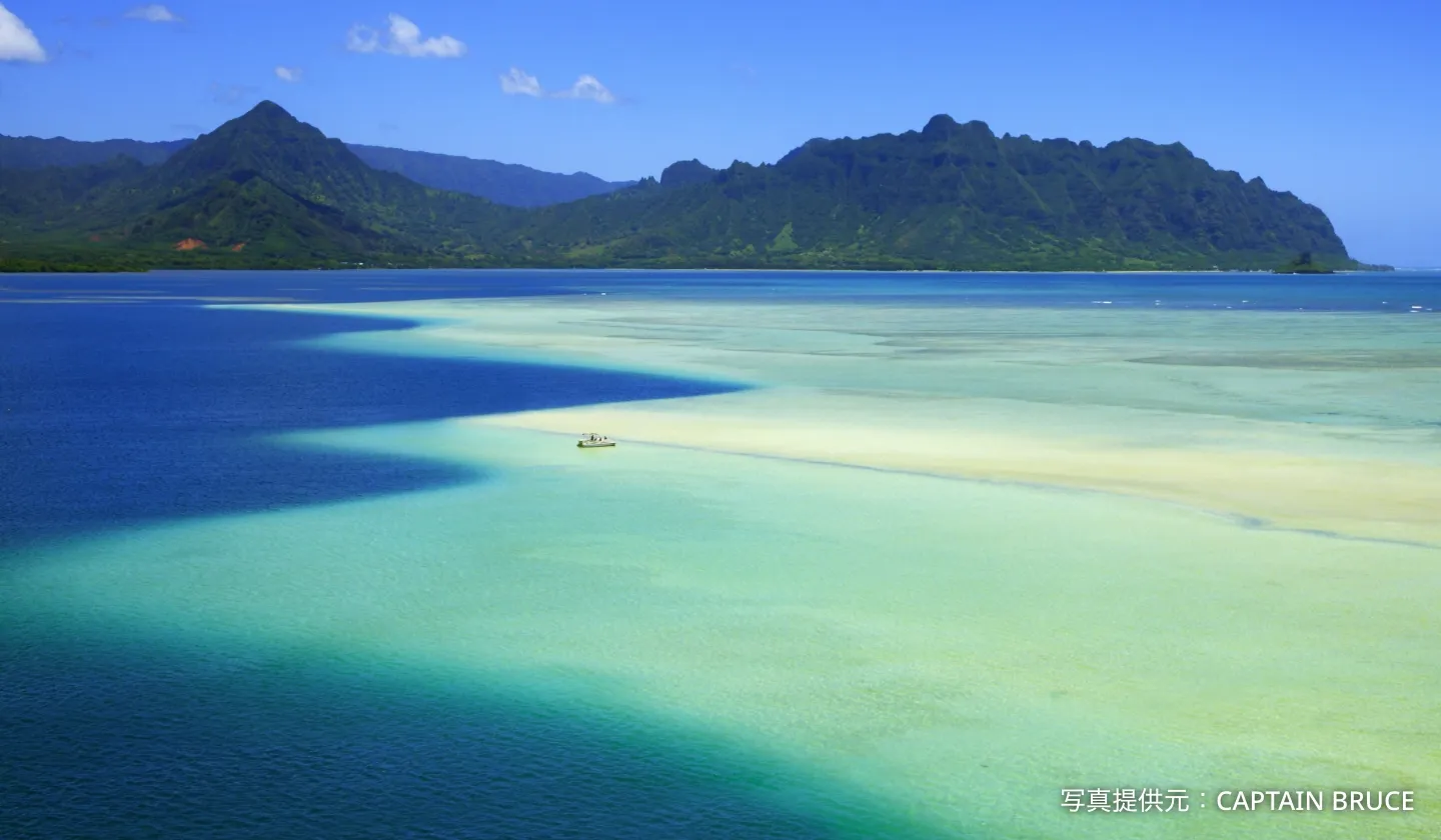 オアフ島の絶景ランキングで必ず上位に入るのが、カネオヘ湾のサンドバーです。潮の満ち引きにより出現する真っ白な浅瀬は「天国の海」とよばれています。訪れるたびに表情の違った砂浜が現れるため、何度訪れても新しい感動がある場所です。