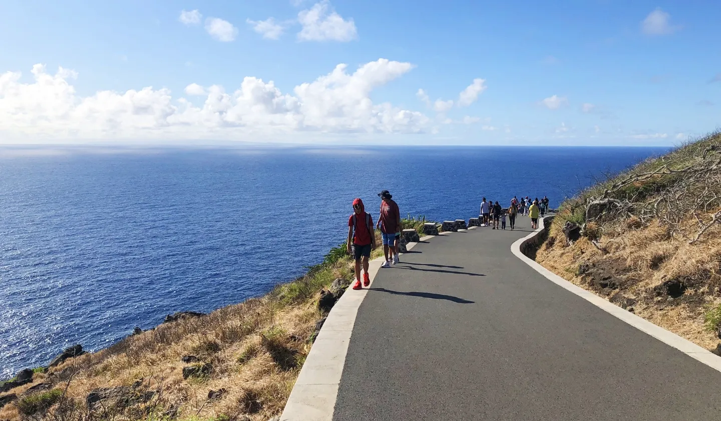 頂上に到着する前から、東側には太平洋の真っ青な海が広がります。ゴール地点の灯台展望台からは、北方向にラビット・アイランドとよばれる小さい島が、そして東には天気がよければハワイ諸島のひとつ、モロカイ島やラナイ島が見えることもあります。また11月から4月頃までの間は、運がよければザトウクジラの群れが現れることも。