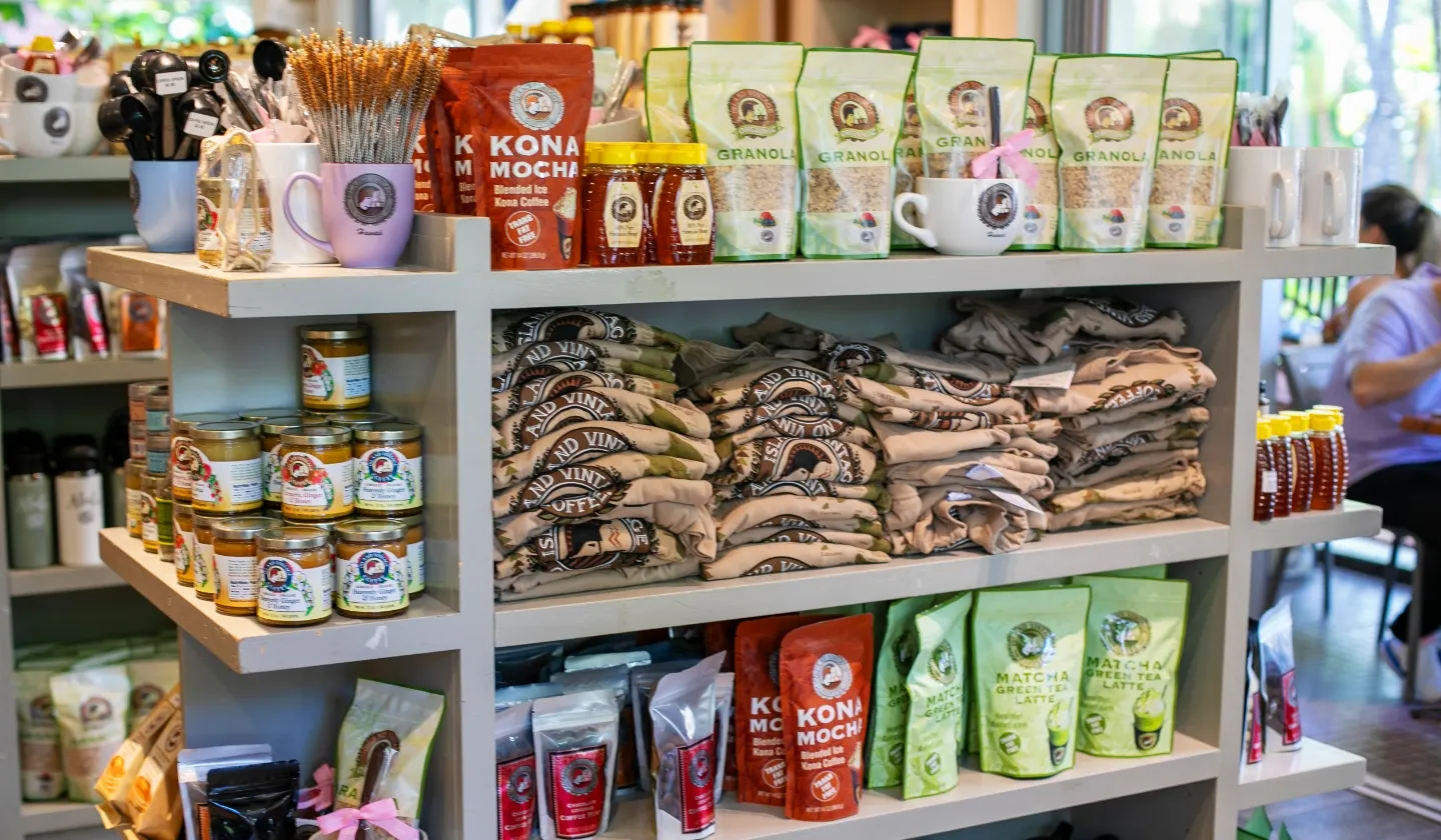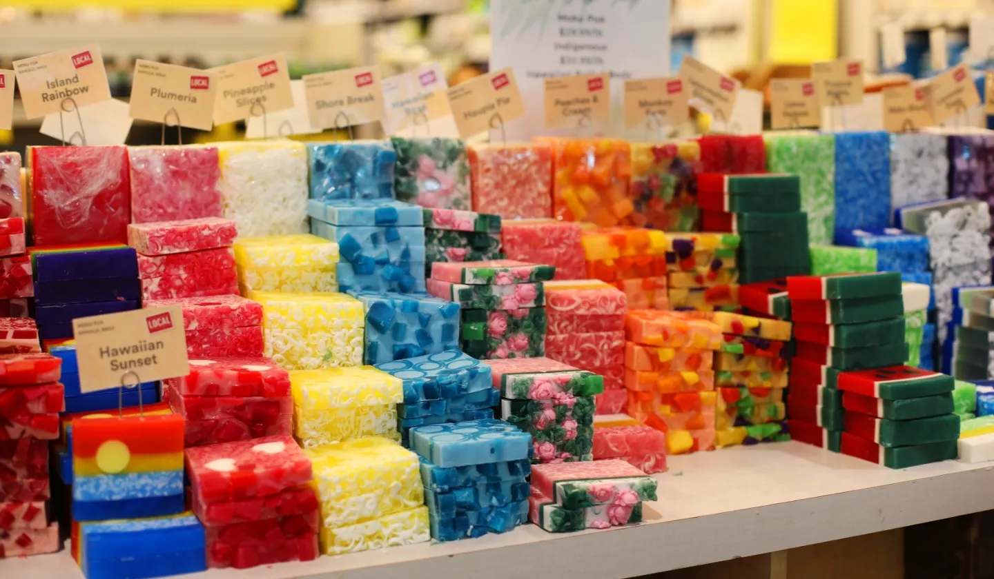 アロハシャツ専門店やサーフストアなど、ハワイならではのお店も人気です。もちろんお土産店も充実していて、ビッグアイランド・キャンディーズやホノルルクッキーカンパニーなど、ハワイ土産の定番お菓子もここで購入することができます。