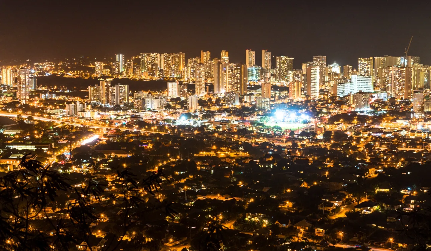 住宅地が密集しているワイキキ、アラモアナエリア内を縦横に走る車のヘッドライト、明かりの灯ったビル群で構成されるホノルルの夜景には、日本の夜景とはまた一味違った美しさがあります。