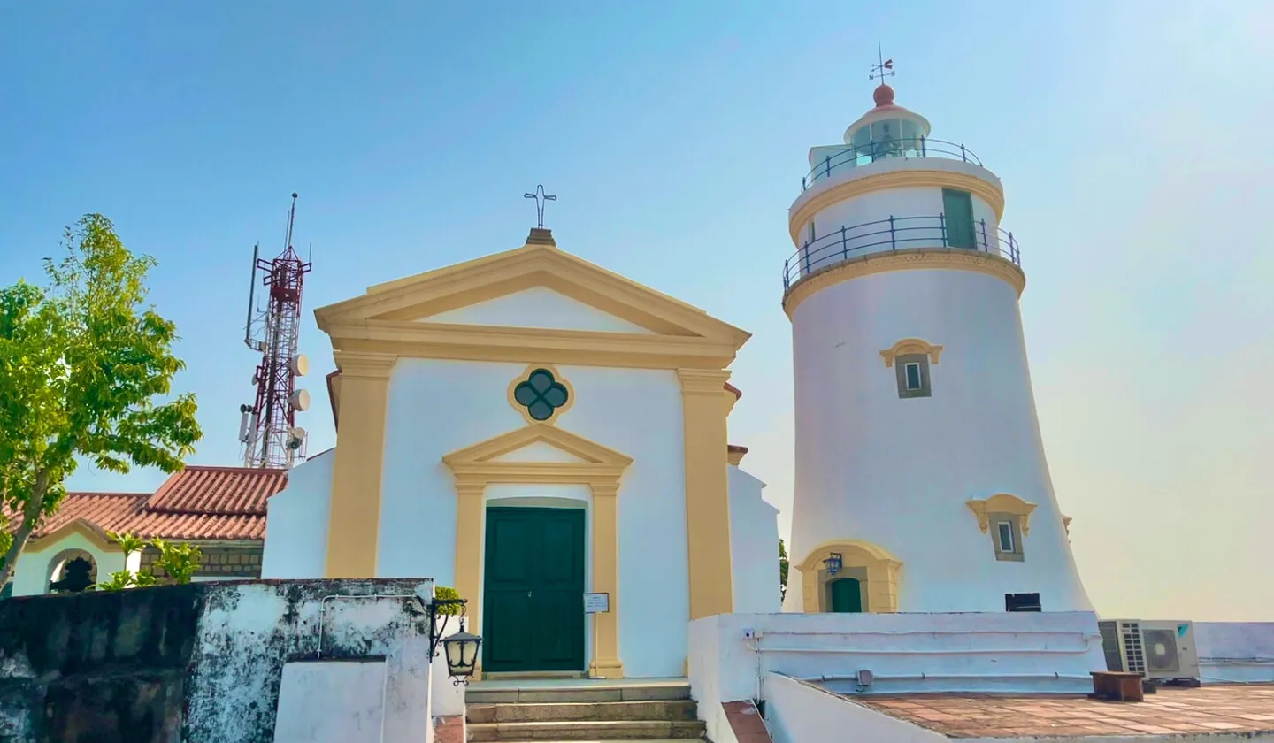 中国沿岸で最初の灯台として建てられたギア灯台は、何度か台風により大破しましたが、修復され現在でも現役で活躍しています。ギア聖母礼拝堂は内部に描かれたフレスコ画が見どころです。聖母マリアや天使の絵とともに狛犬や盆栽の絵が描かれており、マカオらしい東西文化の融合を見ることができます。