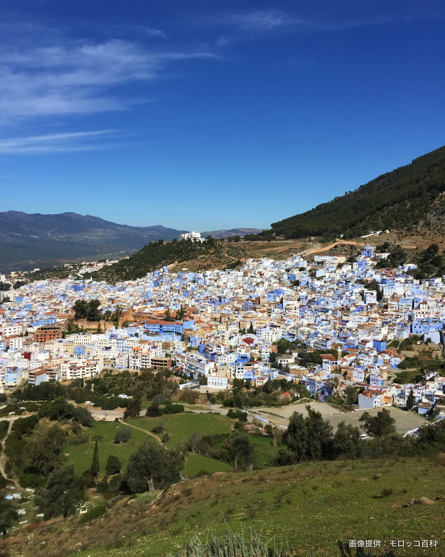 アラビア語で「角」を表す「シャウエン」。リフ山脈の南麗ティスカ山(約2,025m)とメッグ山(約1,616m)の峰が2本の角のように見えるために名付けられたと言われています。