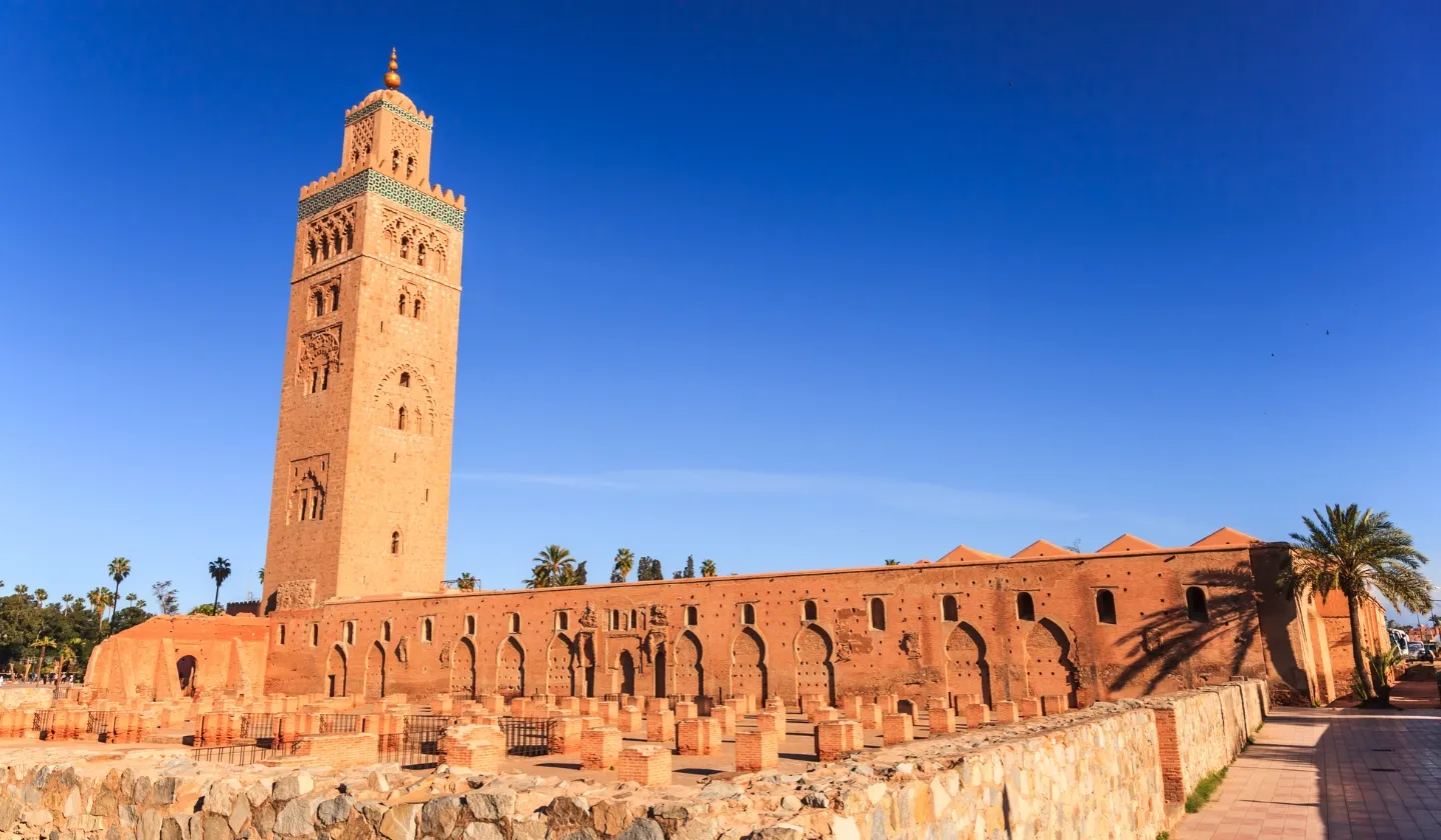 メディナの西には約77mのミナレット(塔)であるクトゥビアがそびえ立ちます。その周りの公園では地元の人々がのんびり過ごす姿が見られ、モロッコののんびりした日常が感じられるでしょう。