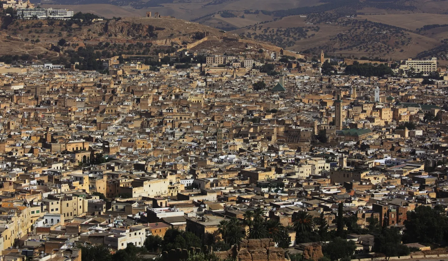丘から見下ろしたフェズの旧市街(メディナ)