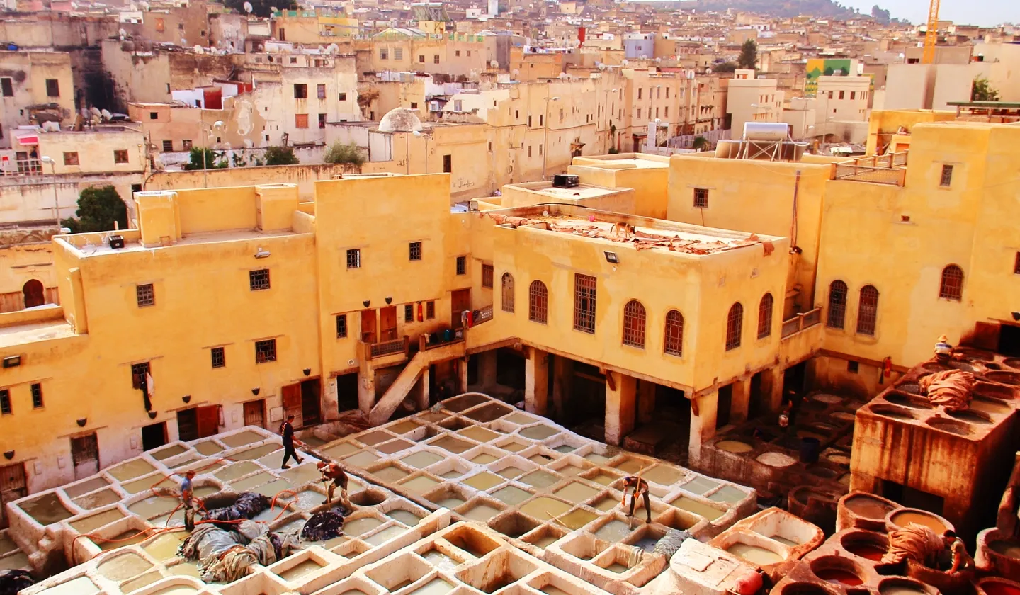タンネリ・ショワラは、フェズ川のほとりにあるなめし革染色職人街エリア。ジュルード門から徒歩約20分の場所にあり、フェズ旧市街の一部として1981年に文化遺産に登録されています。