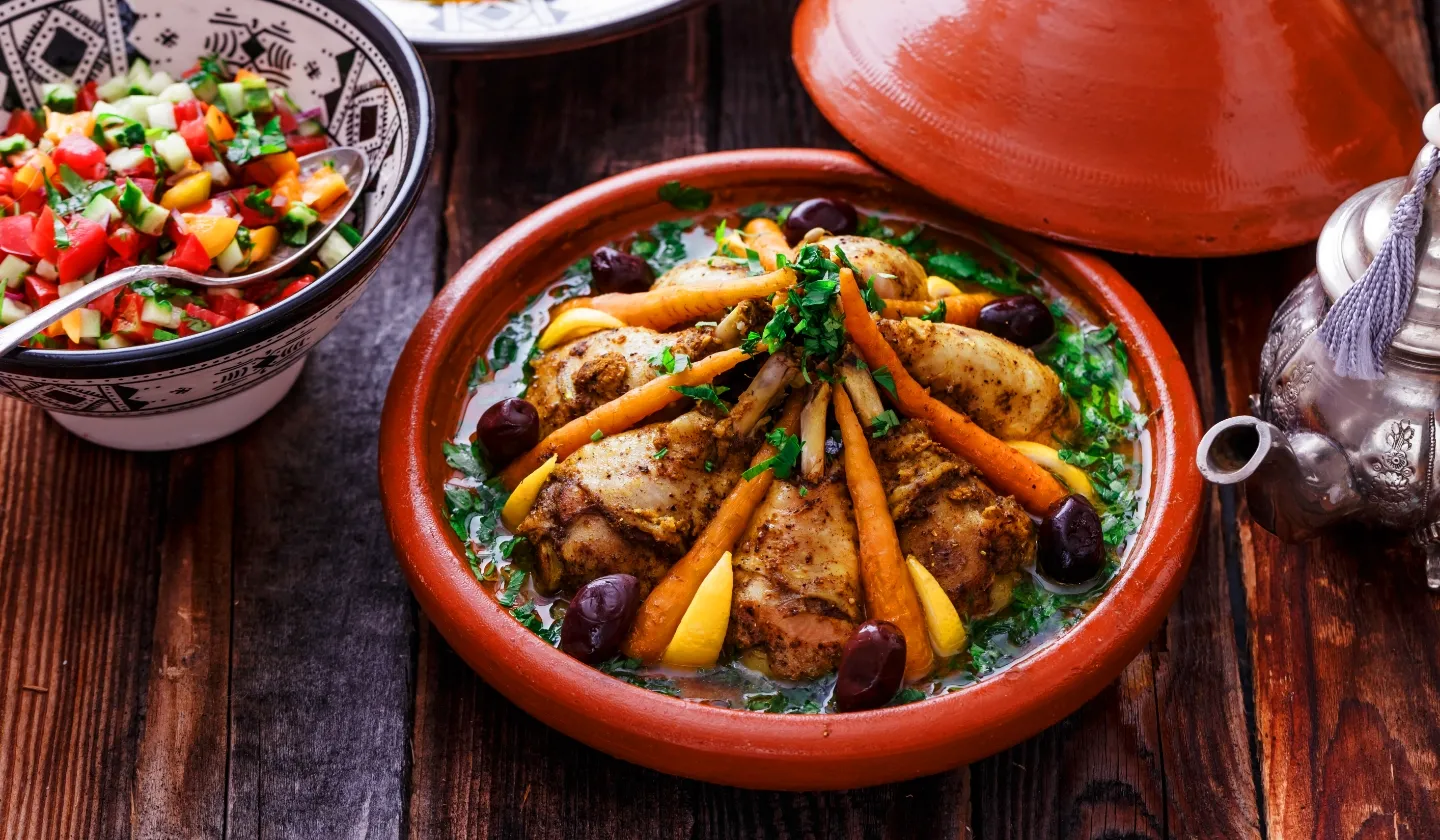 モロッコで最もメジャーと言えるチキンタジンとモロカンサラダ