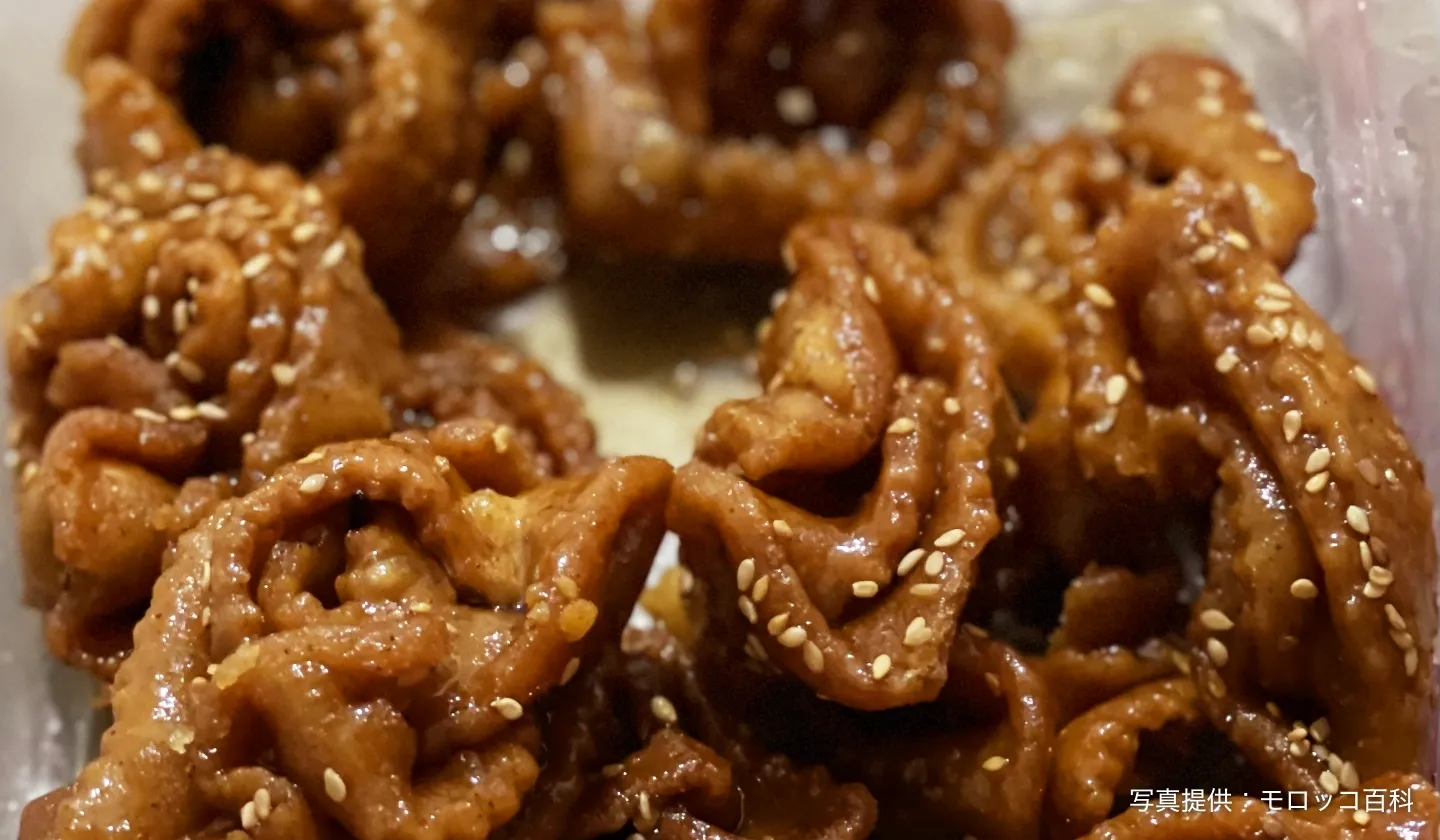 ミントティーと一緒に出されることが多いモロッコスイーツには、アーモンドがふんだんに使用されたクッキー、ブリワットなどがあります。ラマダン時期になると多くの場所で見られるのがシュべキア。はちみちとゴマがまぶされたシュべキアはかりんとうのような味で日本人も食べやすいでしょう。