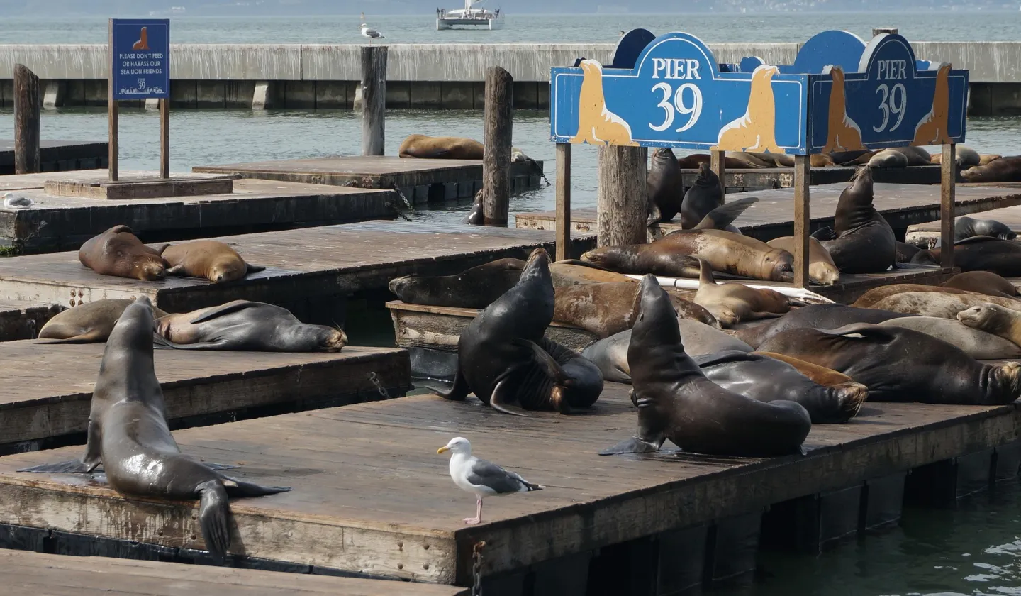 最大の見どころは、浮桟橋で日光浴を楽しむ数百頭のアシカたち。その愛らしい姿は、多くの観光客を魅了します。ストリートパフォーマーの演技も日常的に行われ、賑やかな雰囲気をさらに盛り上げています。