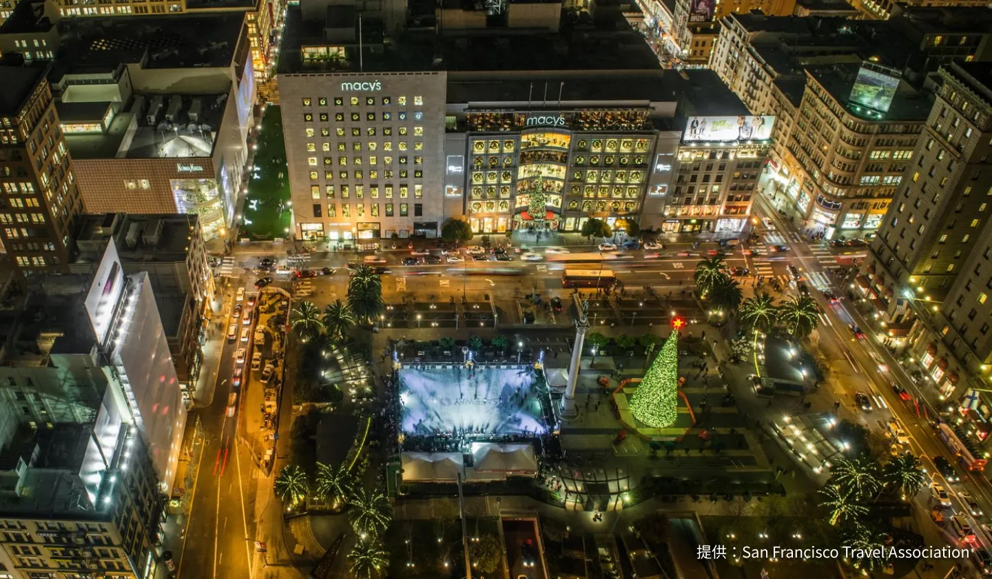サンフランシスコのダウンタウンにあるユニオンスクエアは、市民と観光客の憩いの場として親しまれている中央広場です。