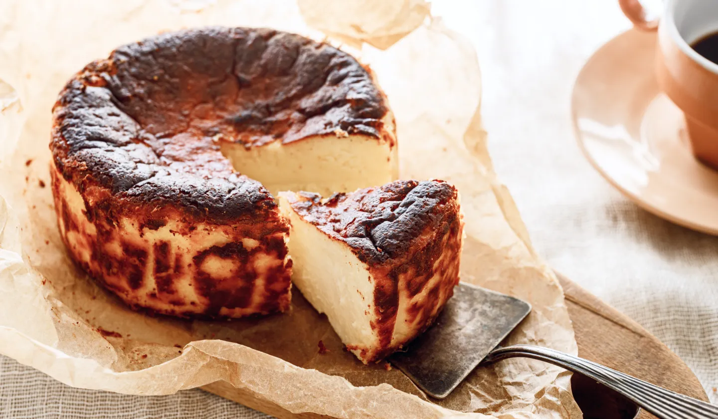 高温のオーブンで一気に焼き上げ、表面を大胆に焦がす。ナイフを入れると、中はとろりと半熟状態。焦げの香ばしさとクリームチーズの濃厚な甘みが、口の中で溶け合います。