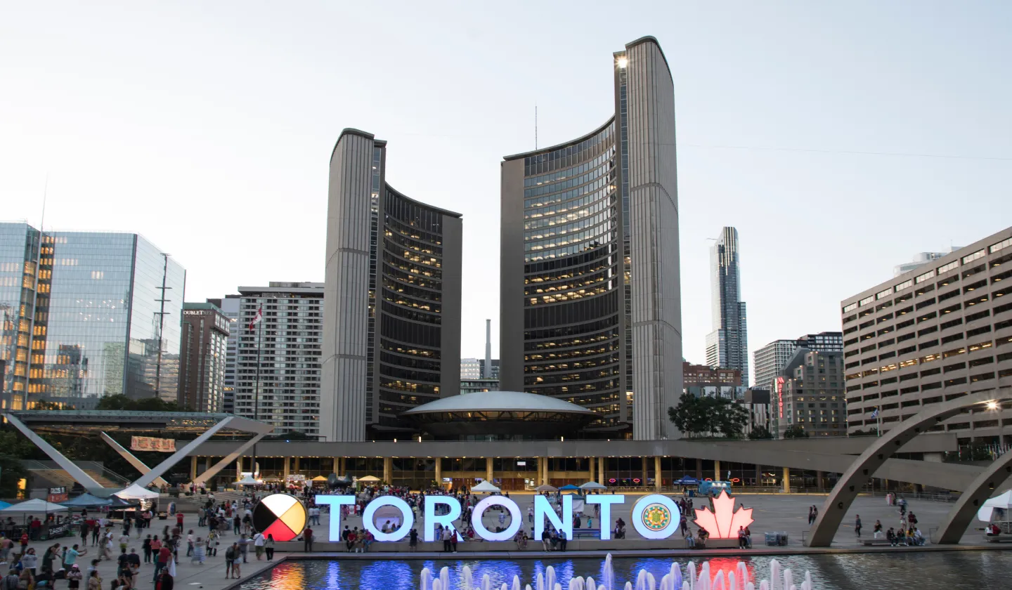 見どころは、市庁舎を背景に設置された「TORONTO」の大型サインで、昼は青空に映え、夜はライトアップされる、記念撮影の定番スポット。
