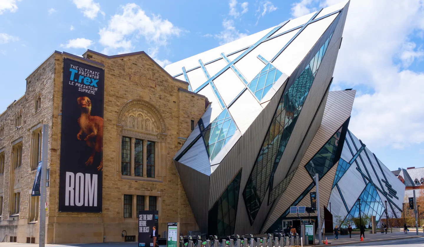 トロント大学にも近く、市内中心部に位置するロイヤル・オンタリオ博物館(ROM)は、歴史的建物と近未来的なデザインが融合した外観が目を見張る総合博物館です。