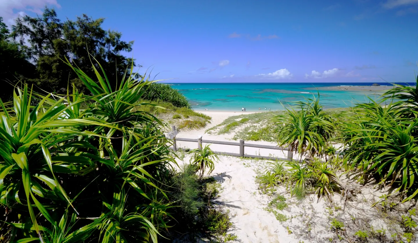 青い海と白い砂浜のコントラストが美しい