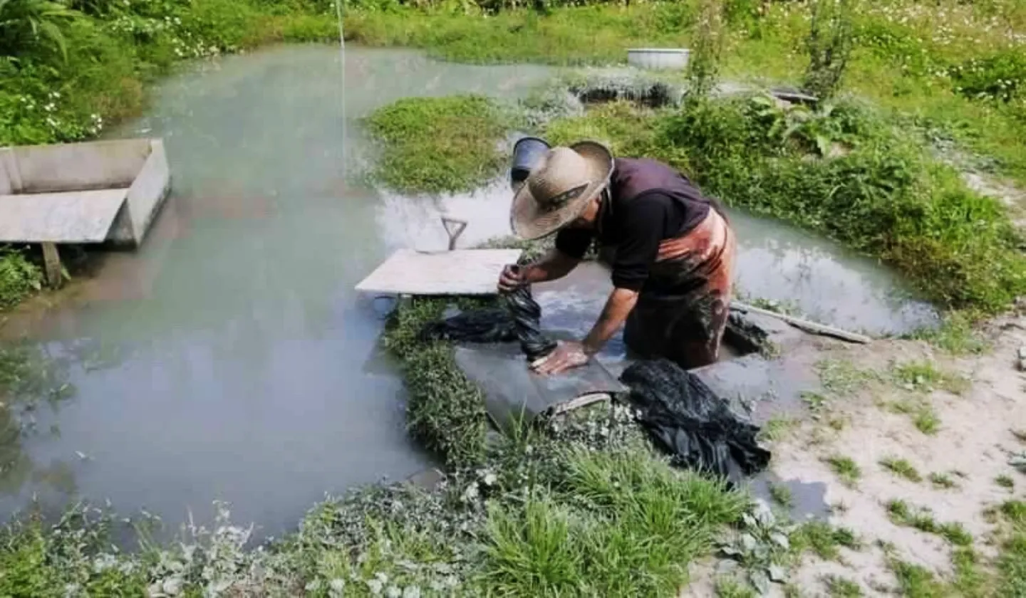 鉄分が豊富に含まれた泥で染める「泥染め」