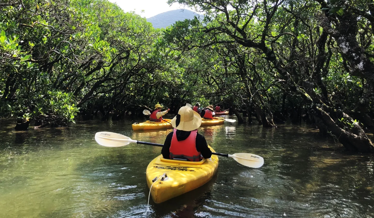 奄美大島のマングローブ林は、日本で2番目の広さを有するほどで、希少な動植物が多数生息しています。小さなお子さまからシニア世代まで、安全に楽しめるカヌー探検では、