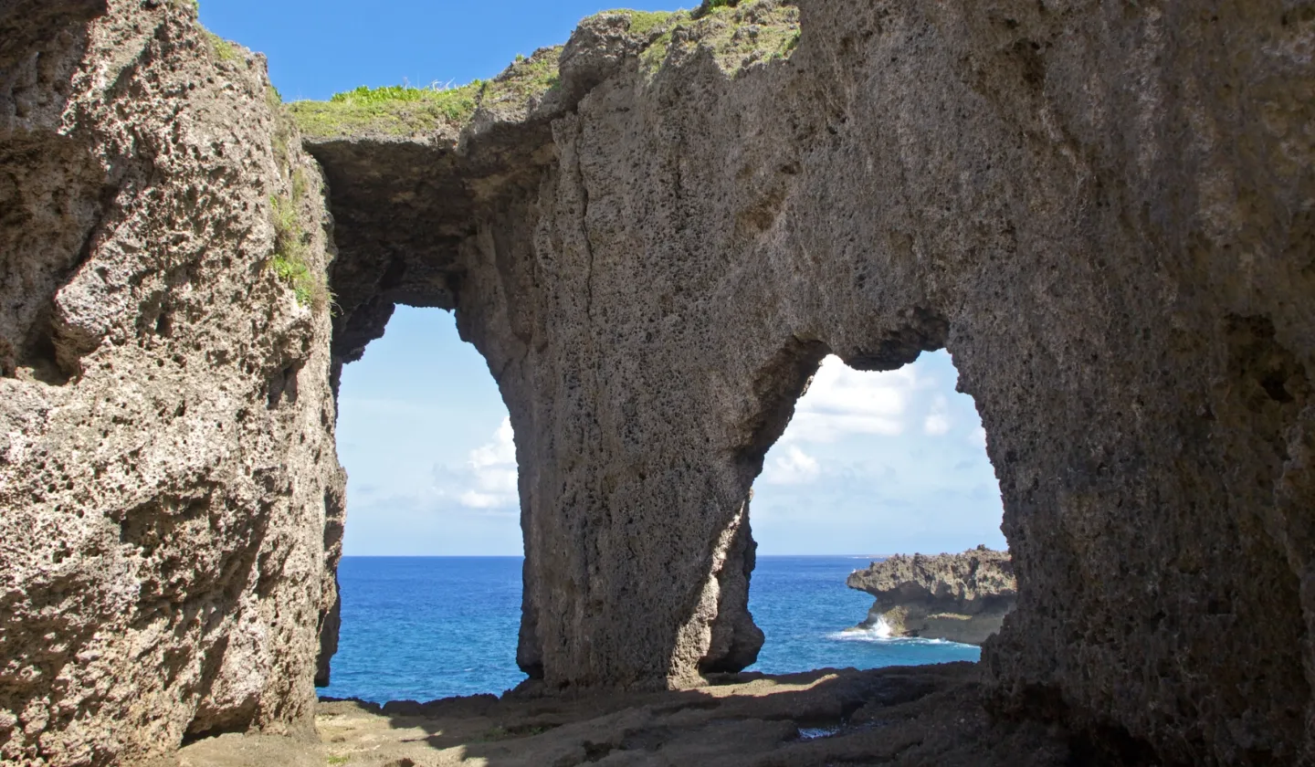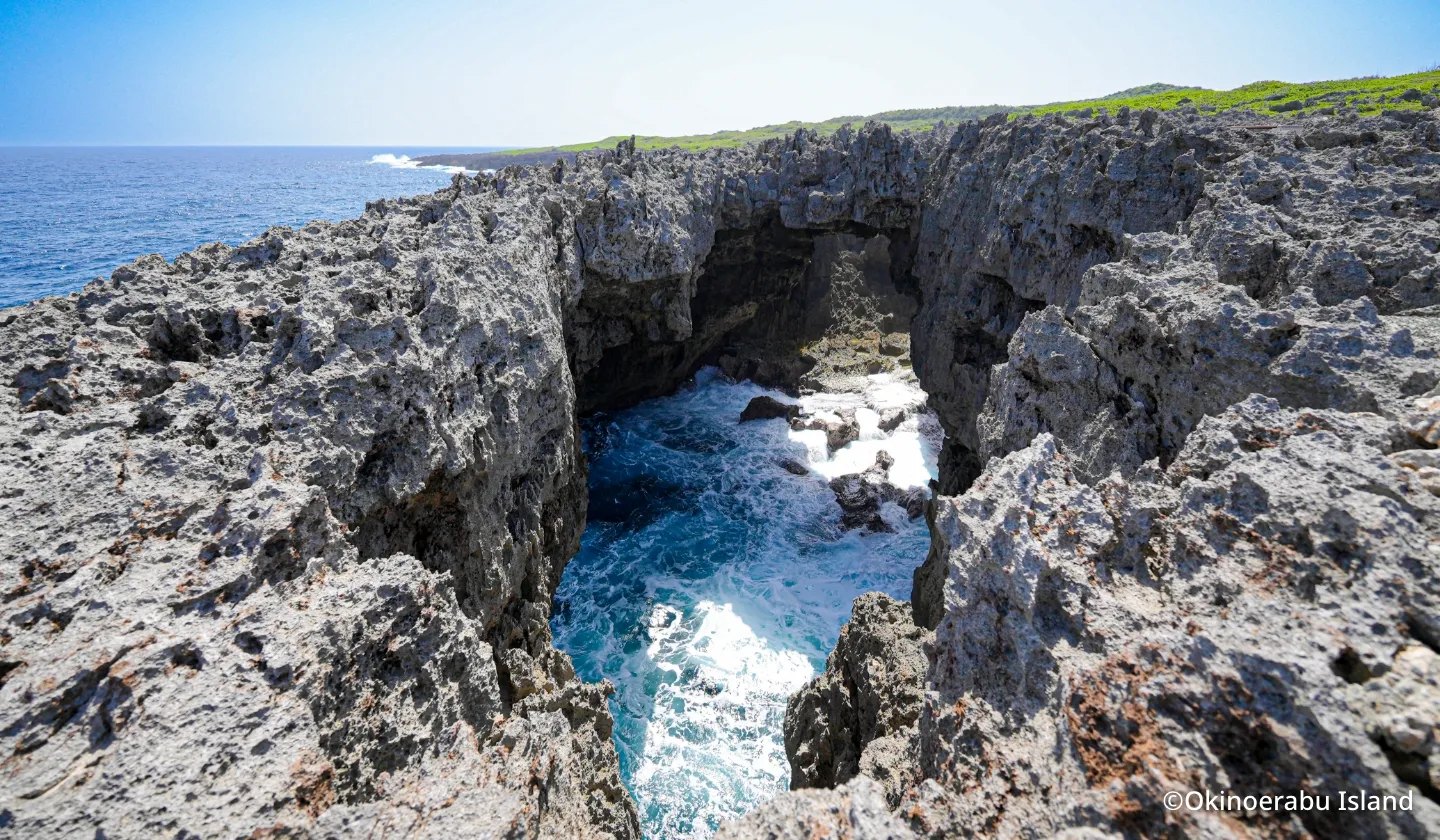 東シナ海の荒波の浸食によってできた断崖と奇岩。隆起した珊瑚礁が長年の波や雨風によって浸食されて形成された、通称・めがね岩は人気の撮影スポットです。徳之島を代表する観光スポットでもあり、奄美群島国立公園にも指定されています。また、ミシュラン・グリーンガイドにも星つきで掲載。冬には沖合にザトウクジラが姿を現すこともあります。