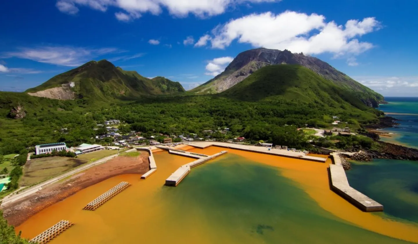 かつて鉱物資源の採掘で栄えた島・硫黄島。鹿児島市から南西へ約100〜150kmの洋上に東西に点在する、竹島、黒島とともになる三島村のひとつです。島の名の通り、岩肌からはもくもくと噴煙が立ち上り、硫黄岳の息吹を感じられる島です。