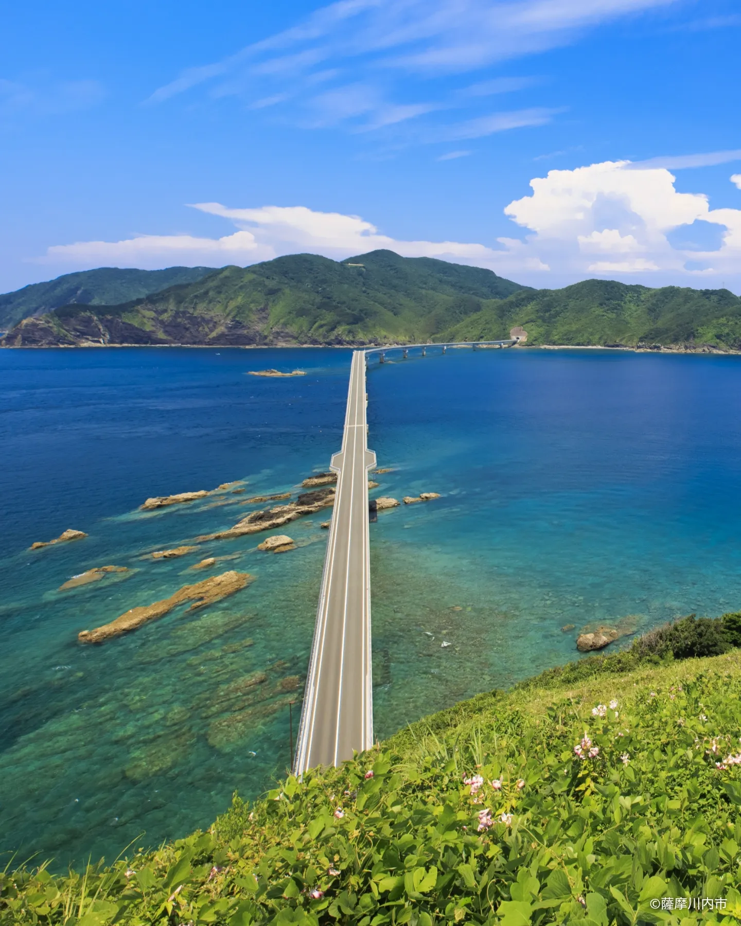 2020年に中甑島と下甑島が甑大橋で繋がり、3つの島間が自由に往来可能になりました。島民の暮らしが快適になったことはもちろん、観光客にとってもよりアクティブに甑島を楽しめるようになりました。甑大橋の全長は、県内最長の約1,533m、海底から橋棚の最上部までの高さは最大で約56.5mあります。車を走らせながら東シナ海のマリンブルーを眺めてみてはいかがでしょう。