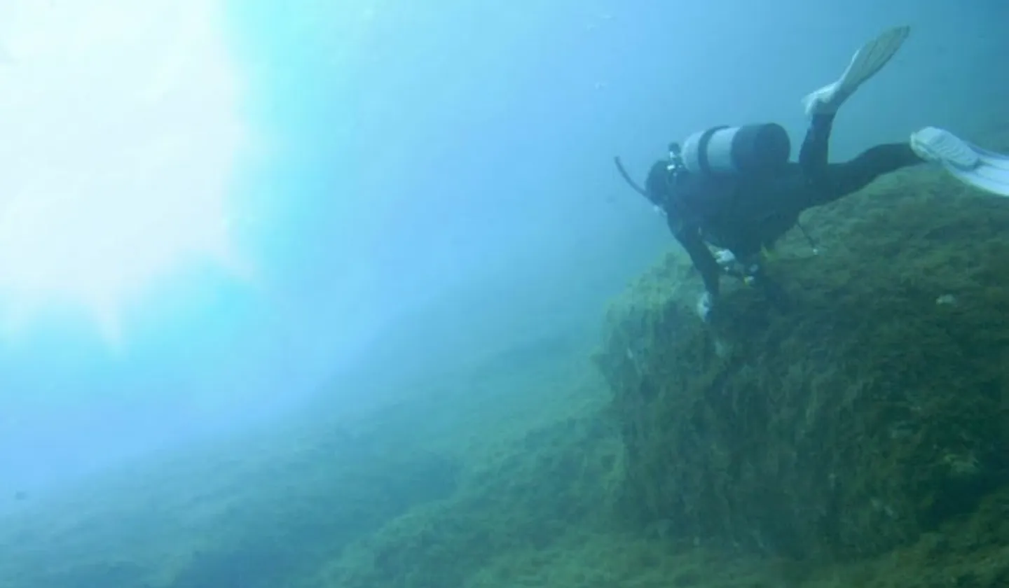 甑島では東シナ海の神秘的な海中をスキューバダイビングで楽しむことができます。甑島は断崖からなる島。海岸線は岩に牡蠣やフジツボなどの生物が多いため、ウェットスーツの着用が必須です。入り江では、クマノミやソラスズメダイ、ハマフエフキなどが見られます。回遊魚との出会いもお楽しみに。