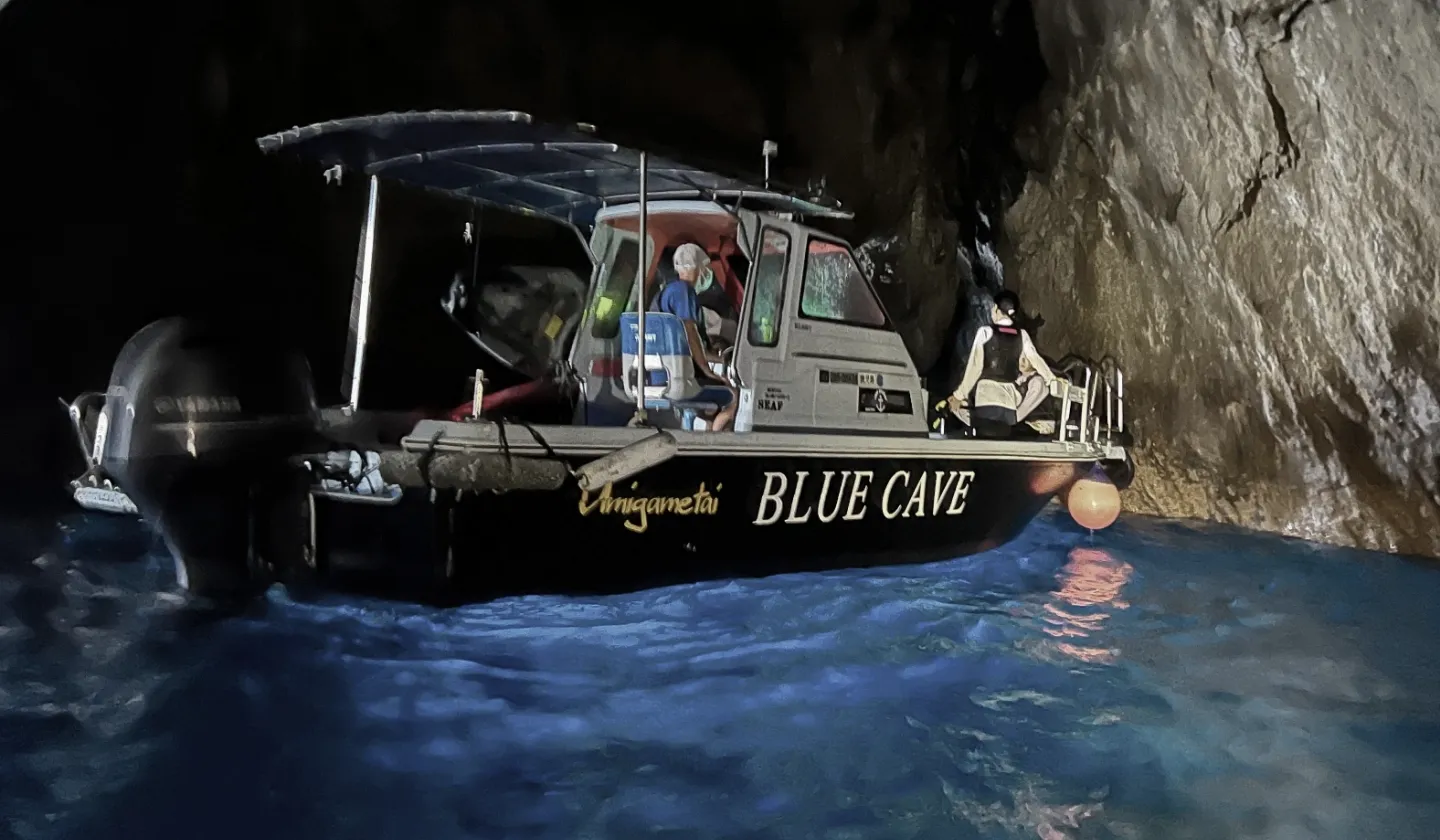 鹿児島空港から川内港移動し、高速船「甑島」に乗船。約50分で上甑島里港へ到着。