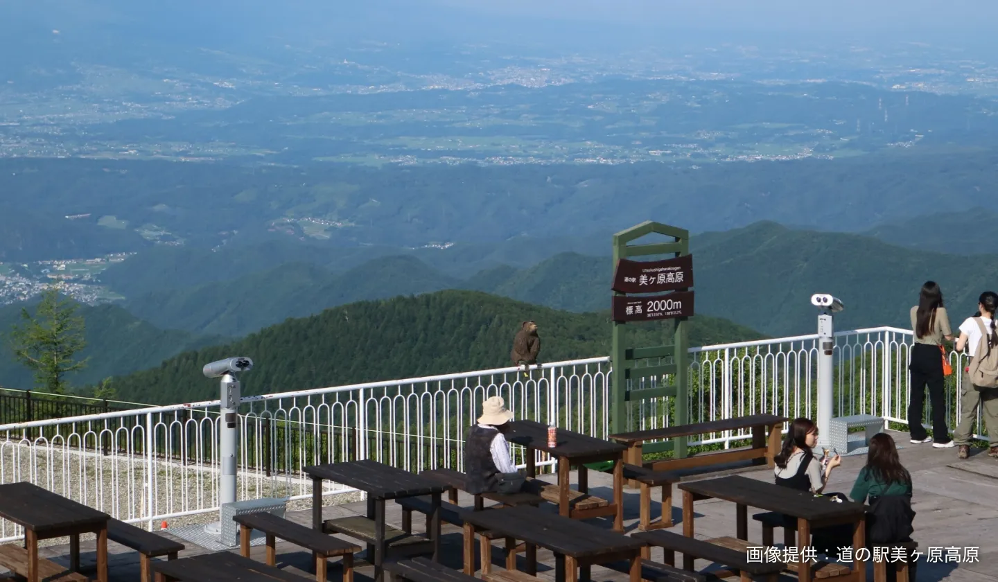 標高約2,000mと、日本一高い場所にある道の駅。美ヶ原高原美術館の横に位置し、レストランや、軽食・喫茶の売店付きのテラスでは、景色を見ながらゆったり過ごせます。