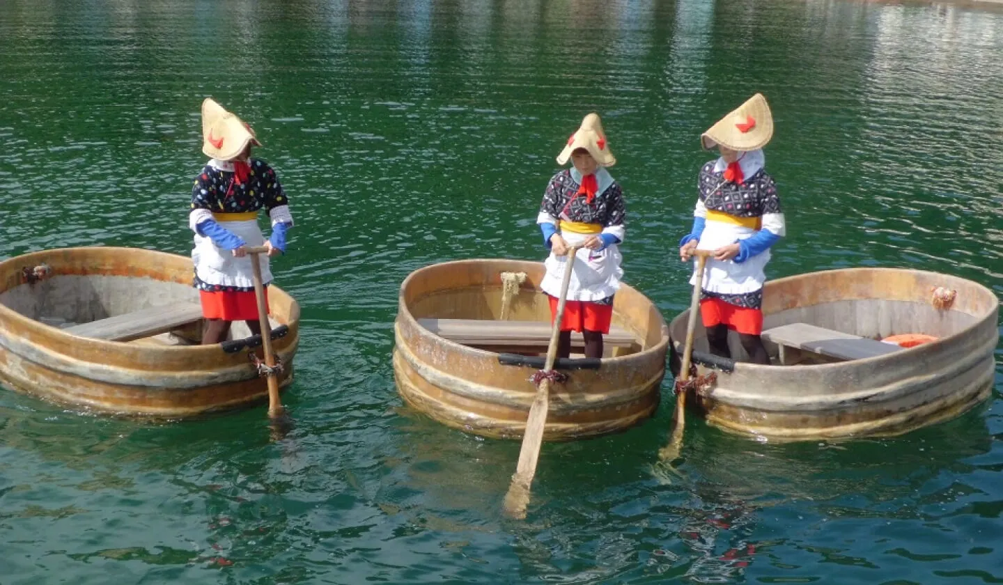 小木港周辺の静かな入り江で、船頭の案内を受けながらゆったりとした時間を楽しめます。水面を静かに滑る舟からは、佐渡の美しい自然を間近に感じることができ、非日常的な体験が味わえます。また、希望すれば自分でたらい舟を漕ぐことも可能で、操作の難しさやコツを学びながら挑戦するのもひとつの楽しみ方です。