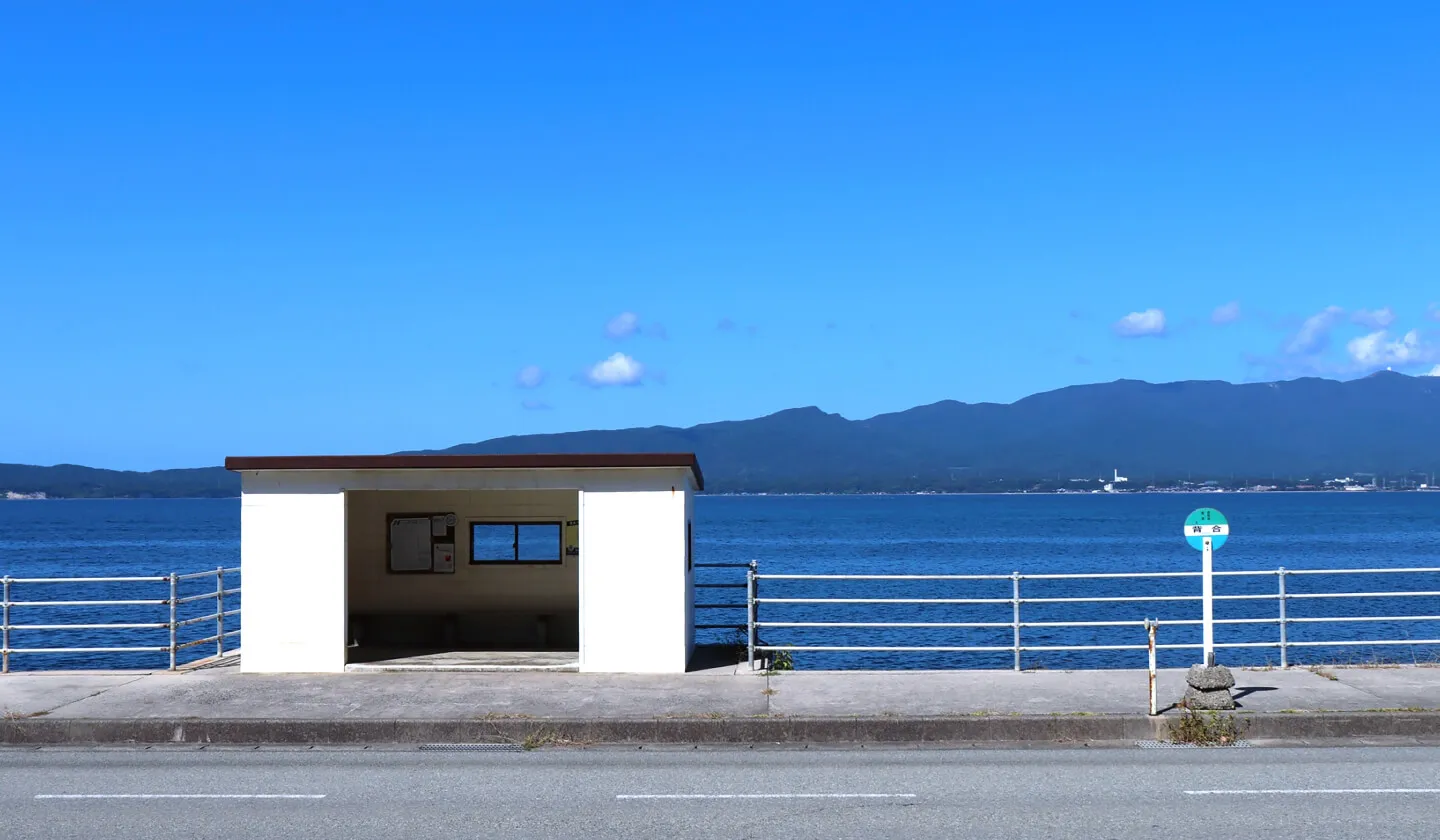 佐渡島の撮影スポットとして人気の背合バス停。海沿いにポツンと佇むこのバス停は、どこかノスタルジックな雰囲気を醸し出しています。目の前には青く広がる海、遠くには山々が望める絶景スポットです。 周囲には建物がほとんどなく、開放感あふれる景色が広がるため、一枚の絵のような美しい写真を撮ることができます。